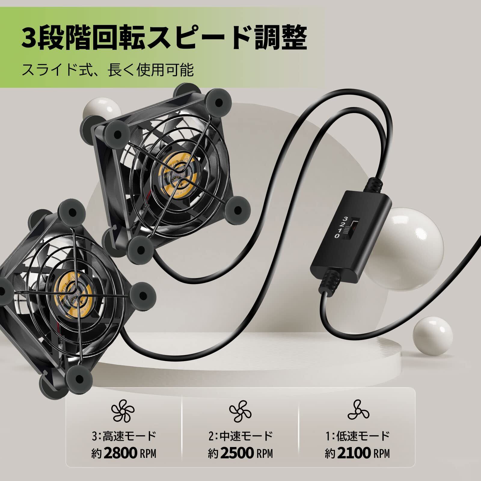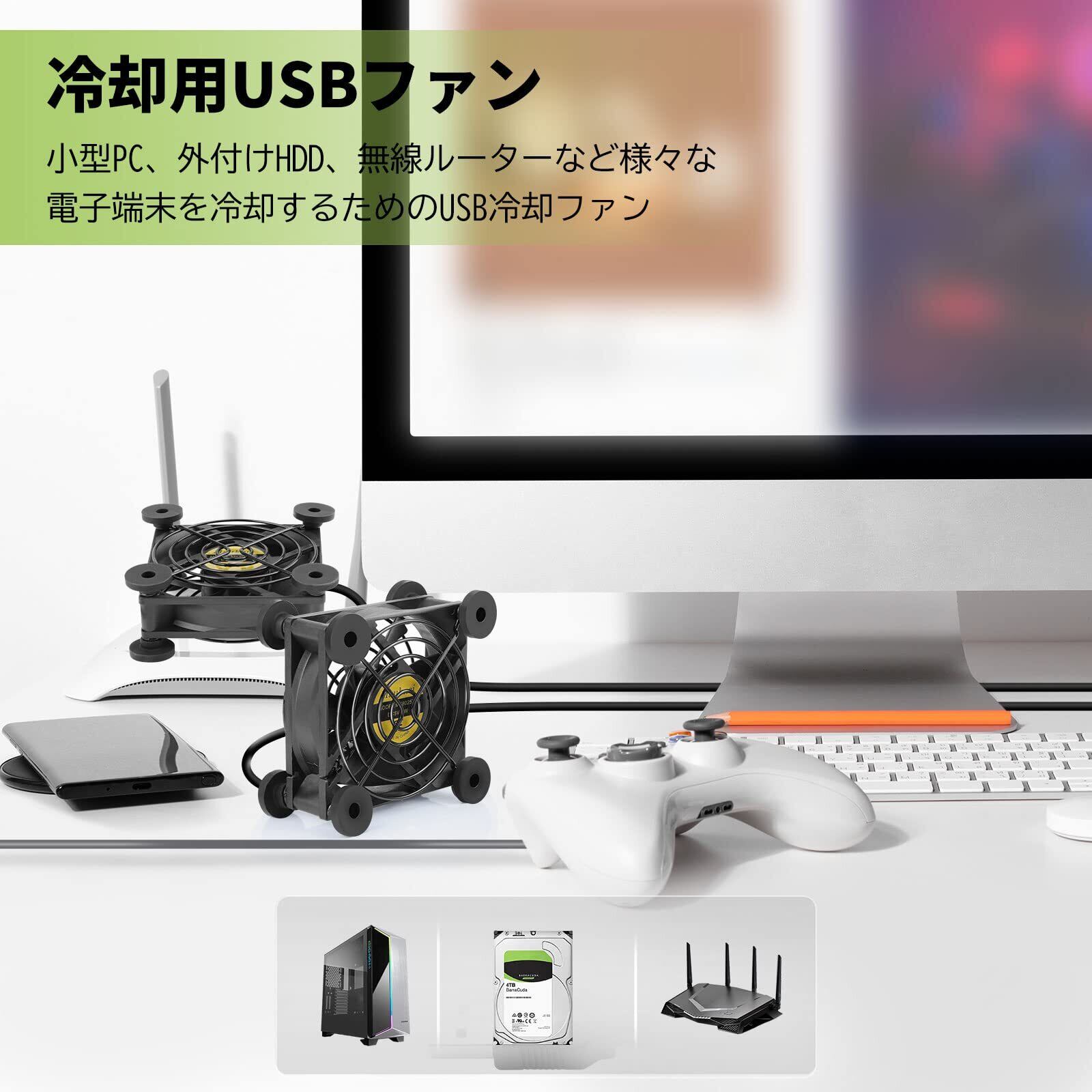 ルーター、AVアンプ、ミニPC、PS4ゲーム機など様々な電子機器を冷やすために設計されたUSB冷却ファンです。静音、且つ高耐久性設計、スイッチを付けっぱなしで、ずっと稼働してくれます。特に夏場時に、電子端末の熱がこもり、熱暴走を効果的に抑えています。
