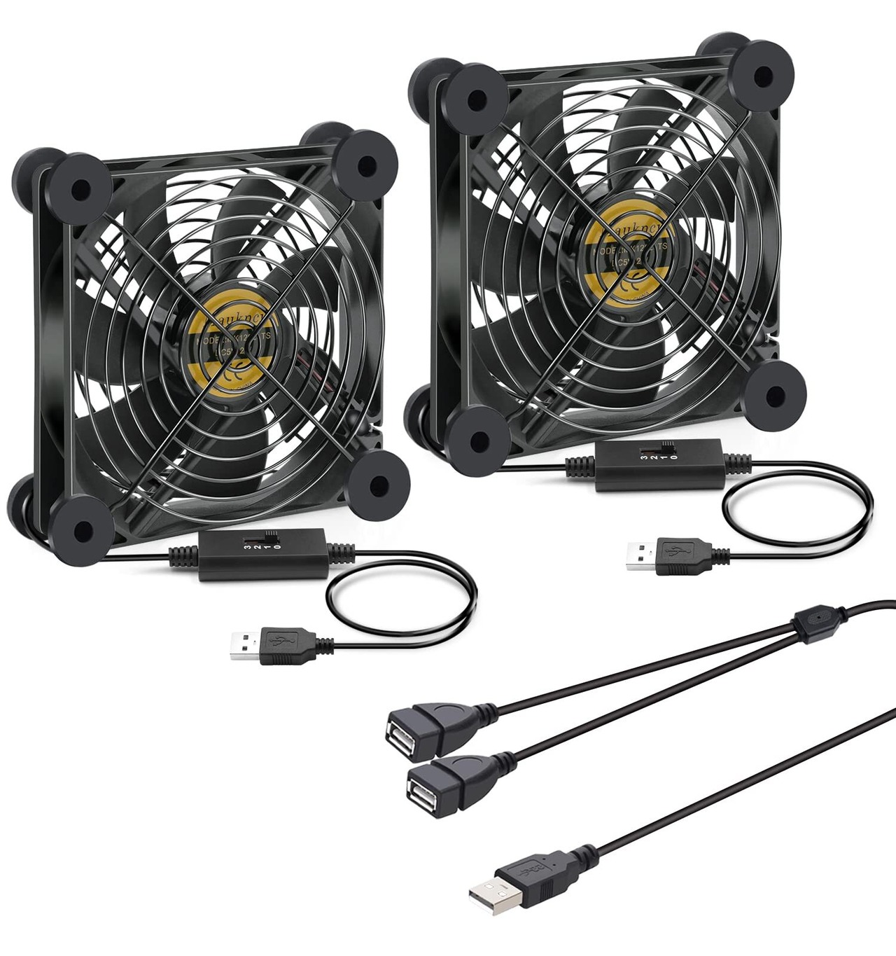 Mauknci USBファン 12cm 静音 冷却ファン 防振ゴム足搭載 2個1組 二つスピードスイッチ 5V USB 扇風機 小型 冷却クーラー ミニファン ルーター ゲーム機など 冷却 ファン