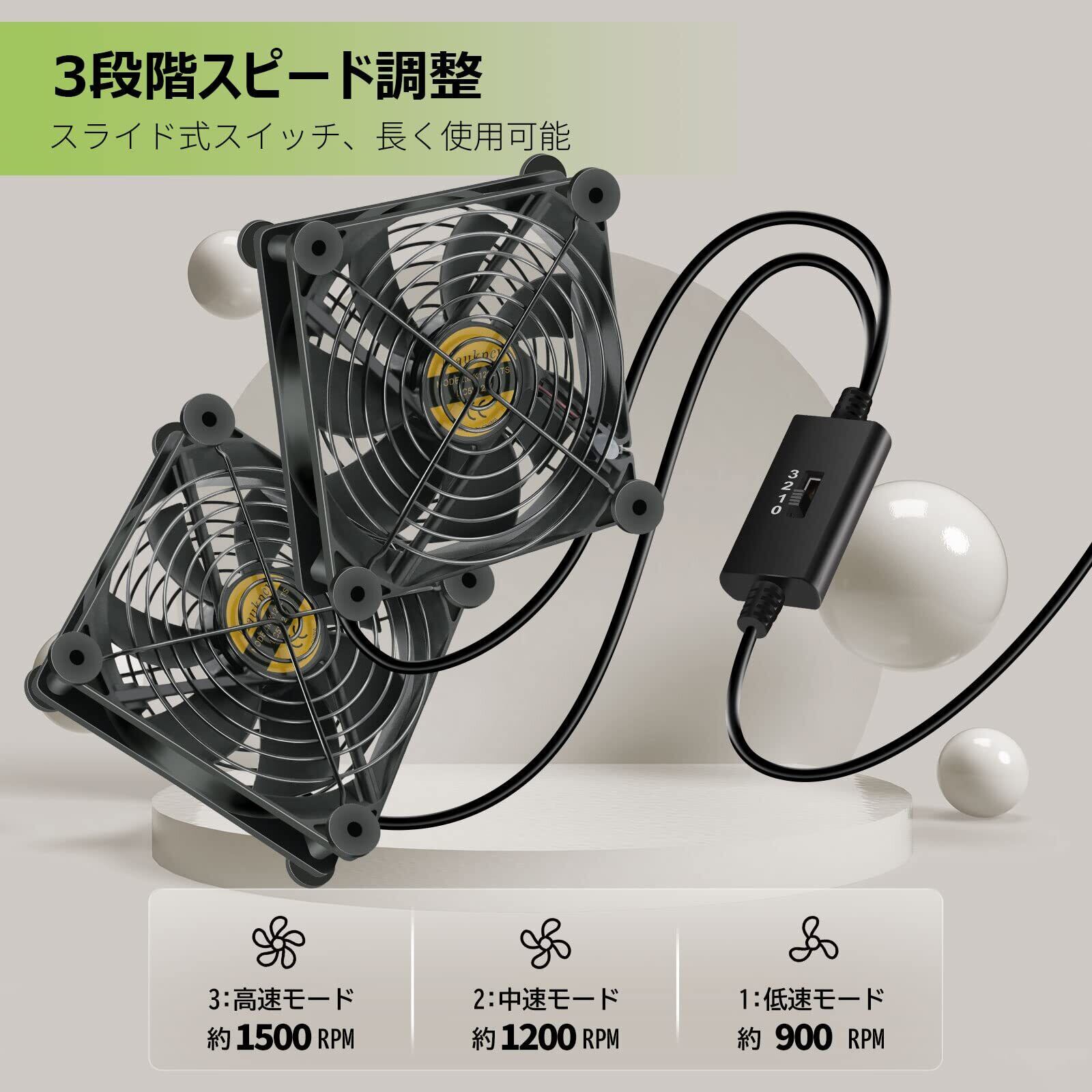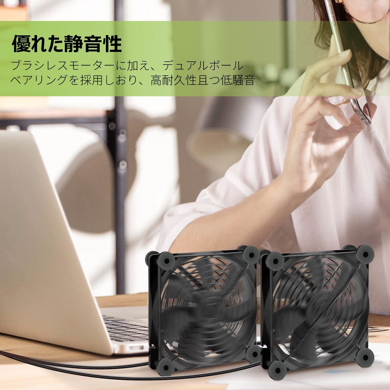ルーター、AVアンプ、ミニPC、PS4ゲーム機など様々な電子機器を冷やすために設計された冷却ファンです。静音、且つ高耐久性設計、スイッチを付けっぱなしで、ずっと稼働してくれます。特に夏場時に、電子端末の熱がこもり、熱暴走を効果的に抑えています。