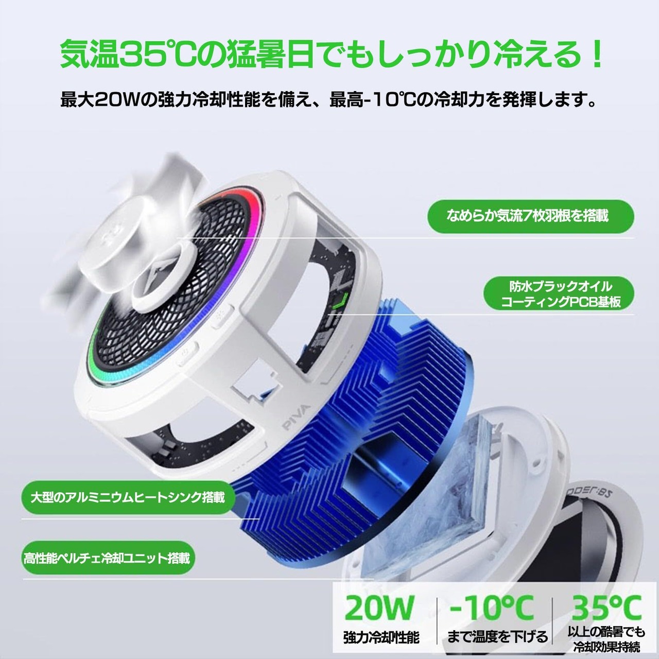 ❄️【排熱効率を高める環状排気設計】 本体の四方から熱気をスムーズに逃がす「環状排気構造」を採用。冷却された熱を効率よく排出することで風道を最適化し、ファンやペルチェ素子の性能を最大限に引き出します。原神やゼンゼロなど高負荷プレイ時にも安定した冷却効果を持続。