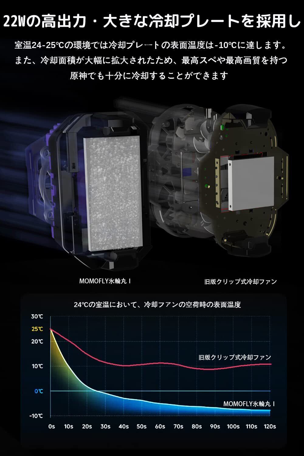 【フラッグシップ冷却システム、最低-10℃まで実現、アーチ形状でも使える】ほとんどの冷却システムは、小型で低消費電力の冷却システムを採用して、最低温度は5〜10℃程度にしかなりませんが、50*30のインテルXeonシリーズプロセッサの冷却システムを採用することで、momofly氷輪丸は同じサイズと重量で、最低冷却温度を大幅に向上させることにしました。また、特別の冷却シートを付属し、市販のアーチ形状や曲面背面のスマホでも、momofly氷輪丸を使用ができます。