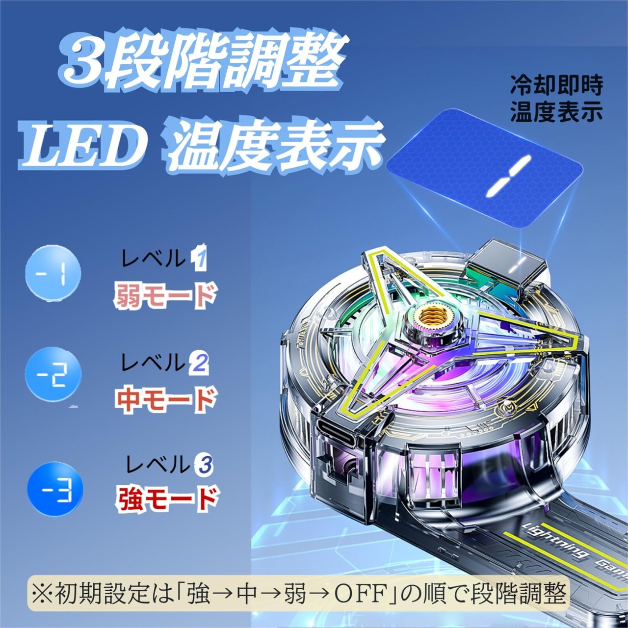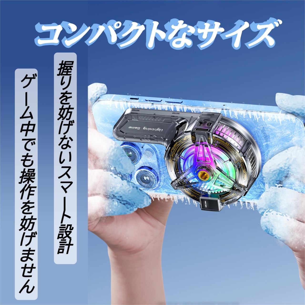 【静音設計でスムーズな生放送体験】 静音設計を採用しており、生放送やゲームプレイの際に、騒音の心配がありません。スマホを冷却しながら、スムーズな生放送やゲームプレイを楽しむことができます。特に生放送中にスマホが高温になり、ブラックアウトすることを防止し、安定した配信をサポートします。