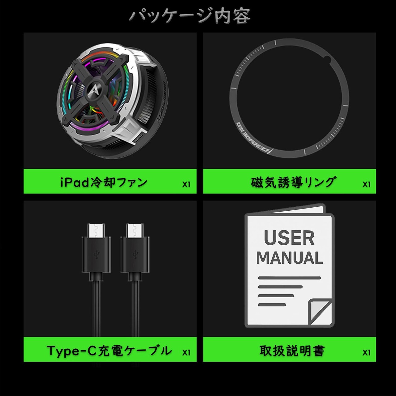 【アプリで温度やライトを調整できるハイテクファン】 iPadクーラーは、専用アプリと連携することで、スマートフォンから風量やライトの調整が可能なモデルです。ワンタップでモード切り替えができ、冷却の強さをシーンに合わせて細かくコントロールできます。さらに、RGBライティングも自由にカスタマイズ可能。ゲーム環境や気分に合わせて光り方や色を選べるため、機能性とデザイン性を両立したモデルとなっています。物理ボタンに頼らず、スマホひとつで操作できる快適さは、日常使いから長時間のゲームプレイまで幅広いシーンで活躍します。
