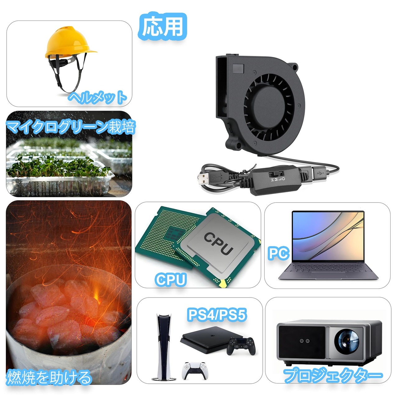 ❀指向性流出: 75mmブロワー冷却ファンには方向性があり、より効率的な熱放散を実現します。スペースが制限される冷却アプリケーションに最適です
