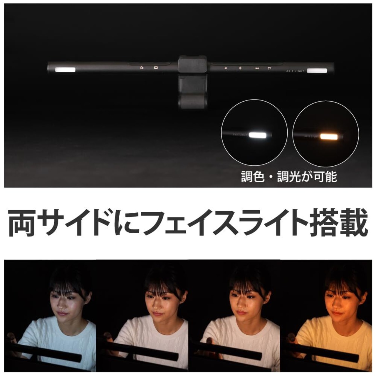 ホタルクス(HotaluX)PCモニターライト 47.5cm幅 【日本製】フェイスライト搭載 WEBカメラ設置台 湾曲モニター対応 USB給電 昼光色/昼白色/電球色 HSDL101CK-UD5 AXIS LIGHT バーライト ~リモートワークやオンライン学習、WEB配信にも最適~