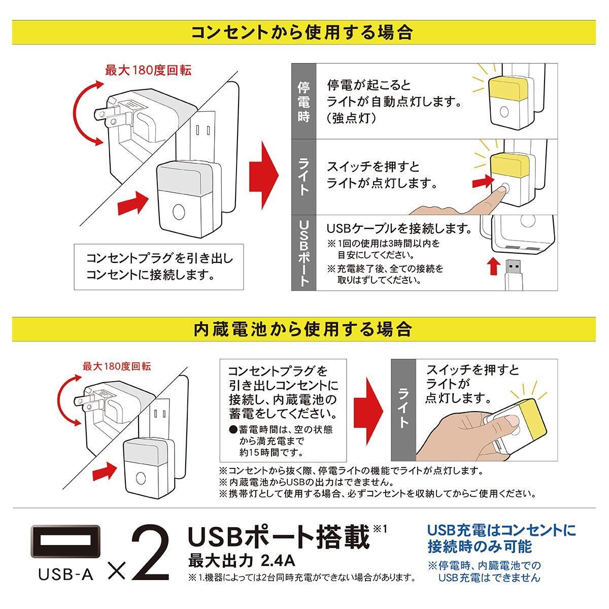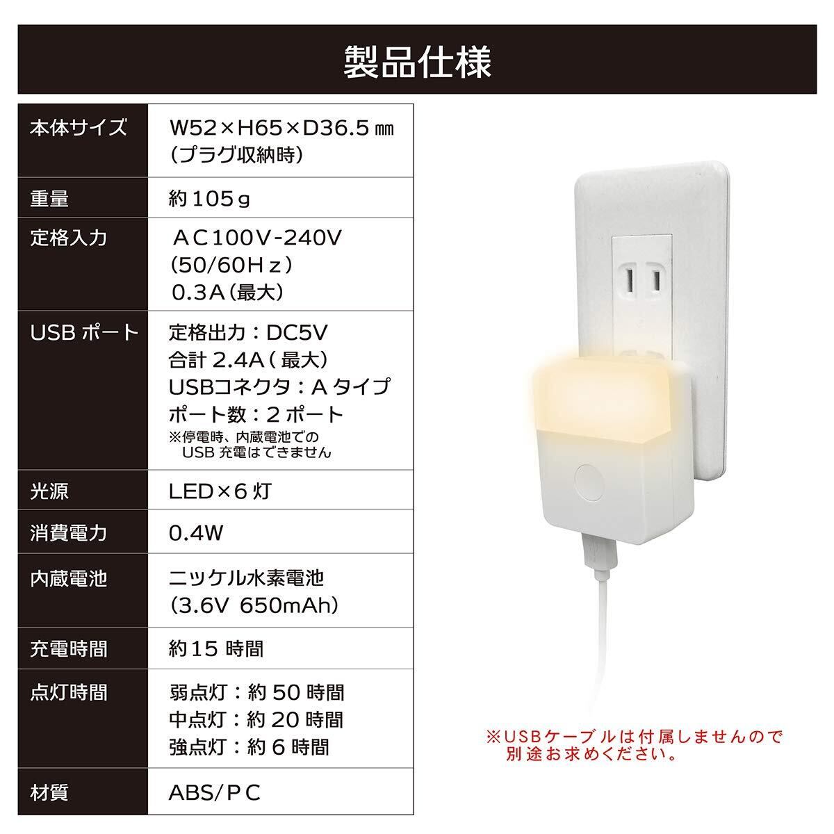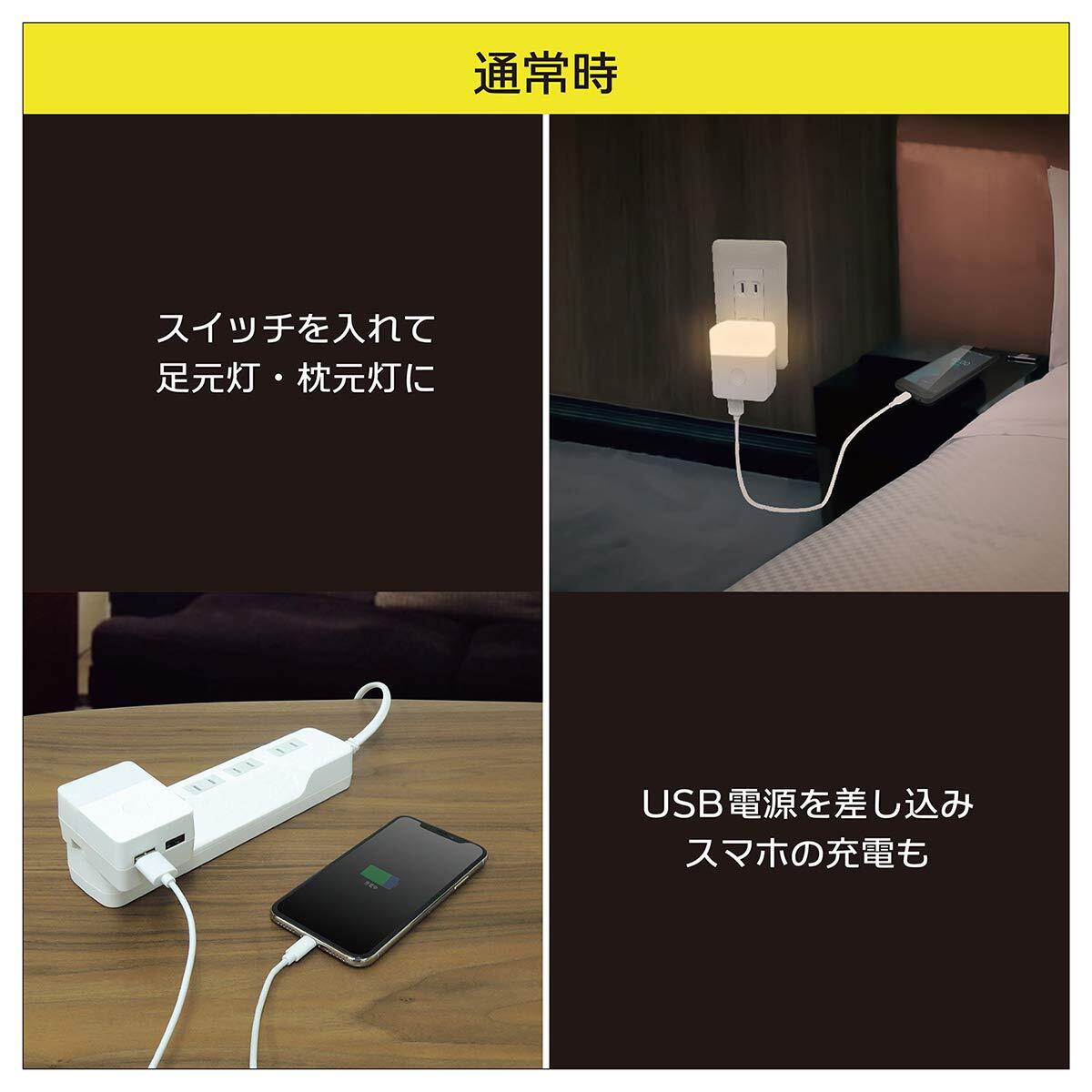 停電時自動点灯ライト付き USBアダプタ