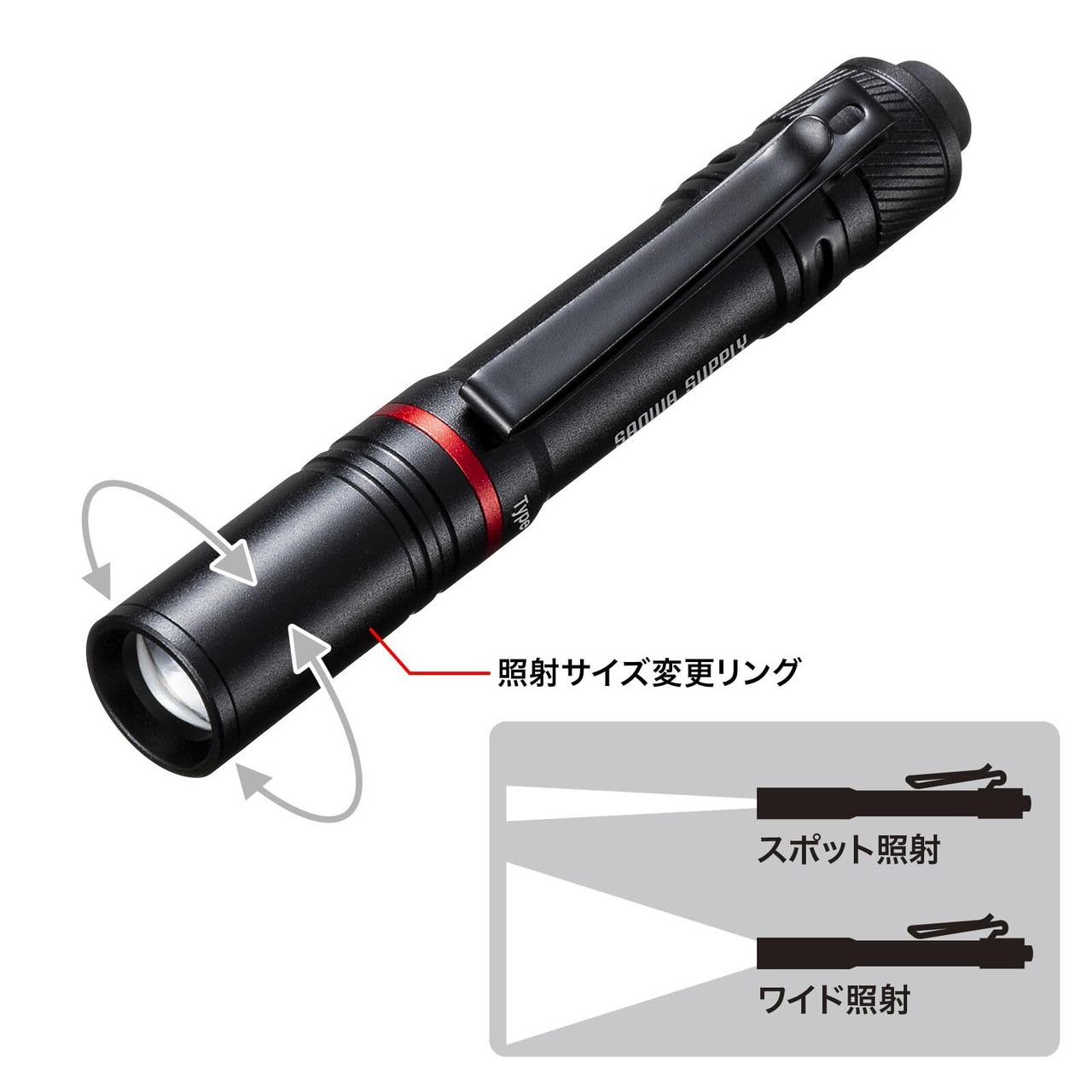 先端を回せば、スポット・ワイド照射の切替が可能です。