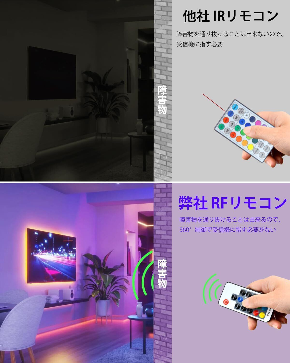 【幅広い適用】テレビ・家具・パソコン・床・廊下・キッチン・ベッドルーム・バーカウンター・クローゼットなどの装飾に最適で、天井、階段、玄関、バー、レストラン、パーティー、クリスマス、結婚式、展覧会の装飾などにも幅広く活用されます。華やかな雰囲気を作り出せるため、イルミネーション用のライトとして使うのもおすすめです。はさみ等で簡単に切断できるので、取り付けたい場所にあわせて使用できます。