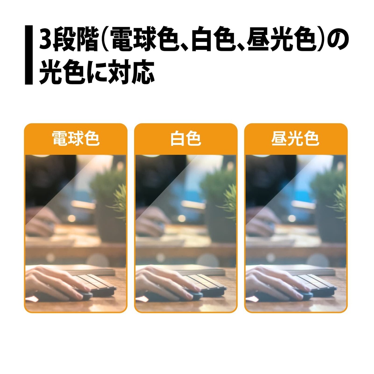 光の色温度を3000K(電球色)、3800K(白色)、5700K(昼光色)の3つから選択できます。
