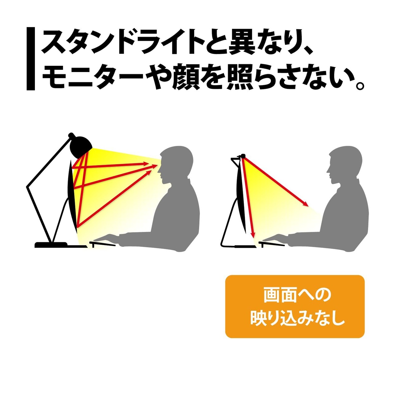 また適切な配光角(約30度)で設計しているのでモニター面や目への直接的な照射が無く、目の負担を軽減できます。