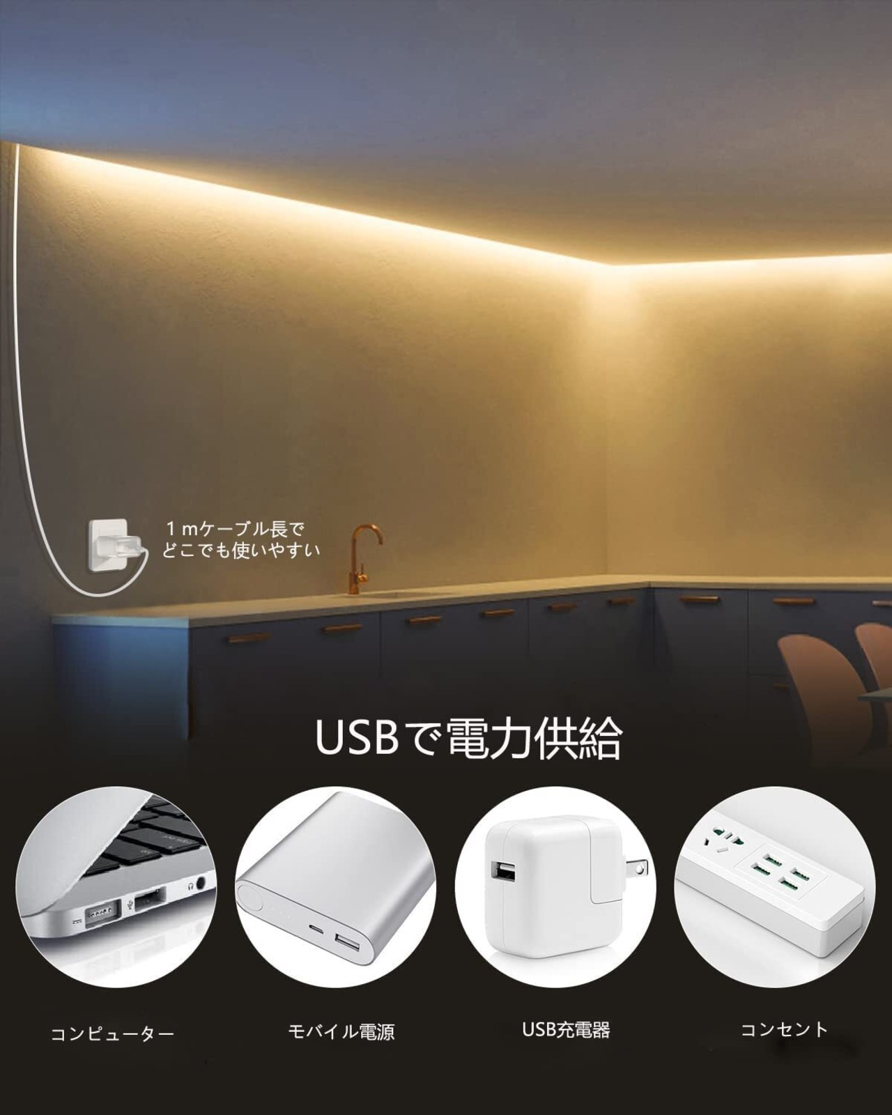 【取り付け簡単】LEDテープの背面に強力な粘着テープがあります。テレビの背面、戸棚、押し入れ、階段脇など照明が必要な場所に簡単に取り付けることができます。ただし、取り付ける前に、接着性がよくなるように表面を清潔にして清潔にしてください。テープライト自体が柔軟性があるで、自由に曲がれて好きな形に成りやすくて取り付け簡単です。家庭やDIYの照明装飾にぴったりです。