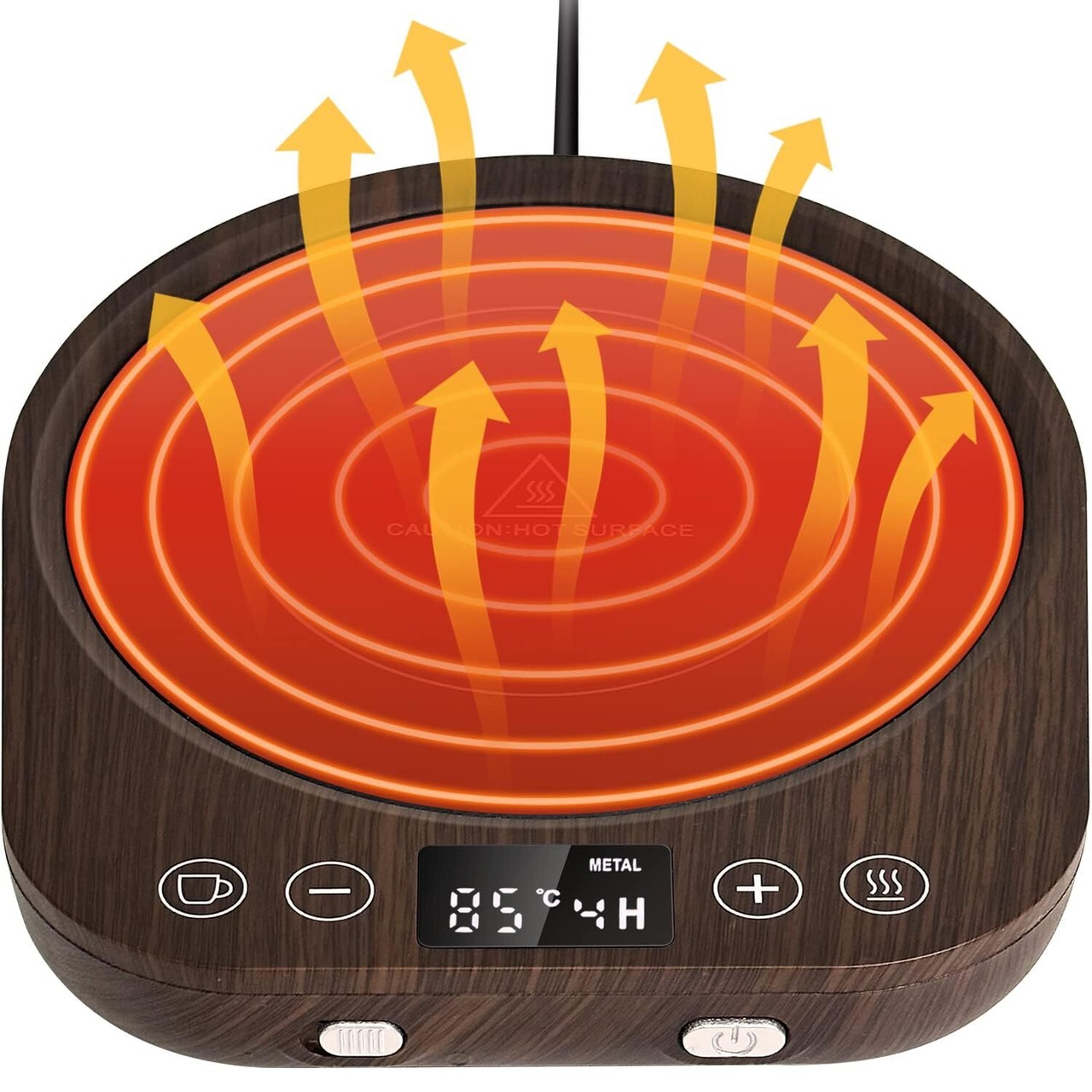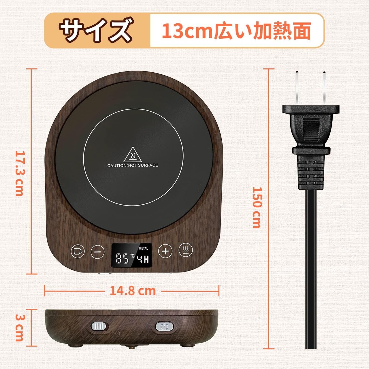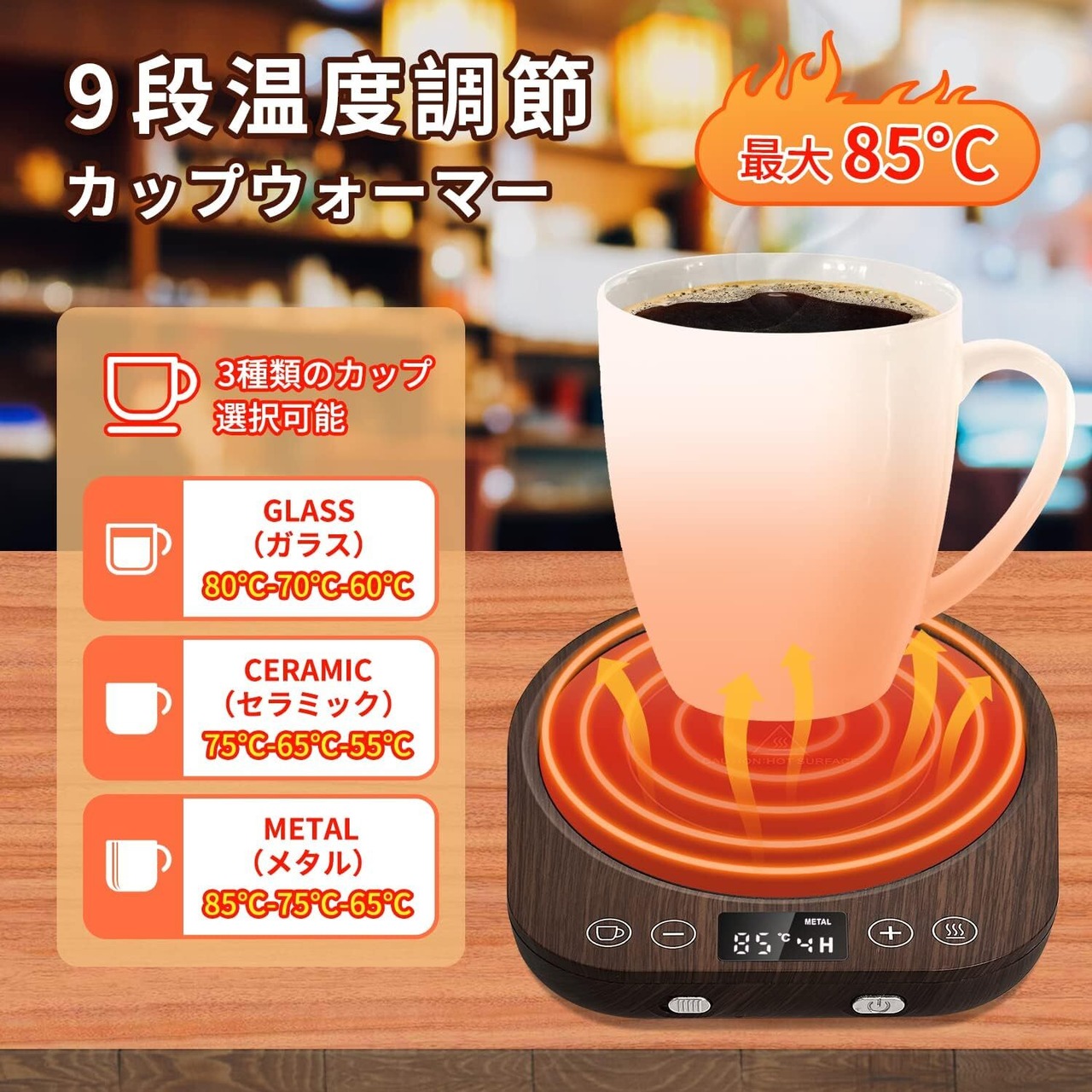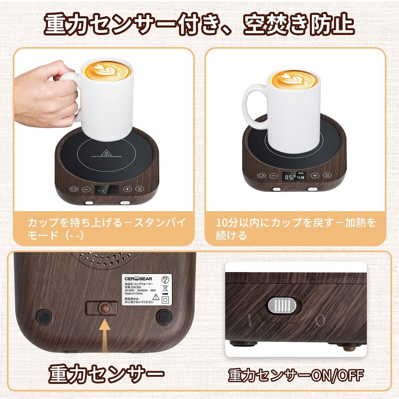 CEROBEAR カップウォーマー 保温コースター【9段温度設定・最高85℃・重力センサー付き】マグカップウォーマー コップ保温 加熱 1-9H自動電源オフ 13cm広い加熱面 静音 防水 コーヒー/水/お茶/牛乳など飲み物 オフィス/家庭用 友達/家族へのプレゼント PSE安全認証済み AC100V/36W 多機能DS1292 木目