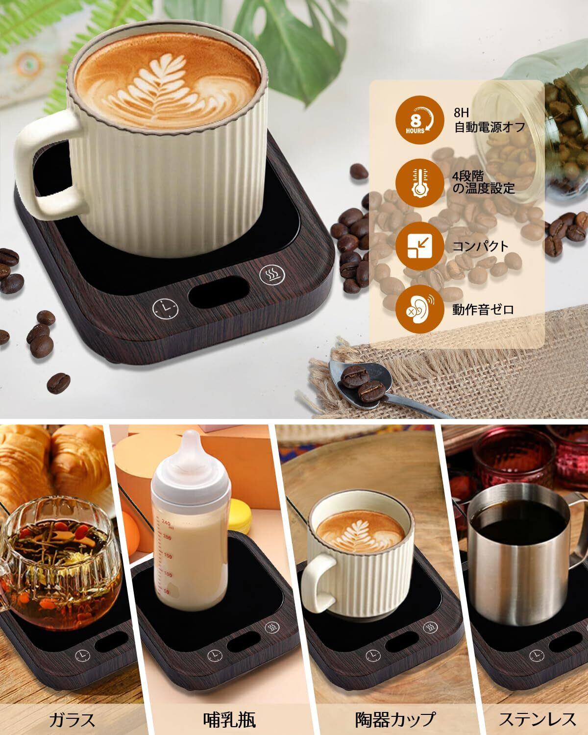 【革命的なカップウォーマー】どんなカップも瞬時ぽかぽか!形も素材も選ばない魔法のヒーター!寒暖差の激しい天気の中、すぐに温かい飲み物を一杯飲んで体を温め、心身の疲れを解消。✓置くだけ即温 ✓変形カップ ✓冬のデスク作業必須アイテム✓飲み物を長時間保温し、冷めにくくする設計で、コーヒーや紅茶、ホットミルクや陶器マグカップを最適な温度で楽しめます。45℃~80℃の4段階温度調節可能で、朝の目覚めの一杯から夜のリラックスタイムまで、好みの温度をキープ。冷めた飲み物も素早く再加熱でき、常に温かさをお届けします。