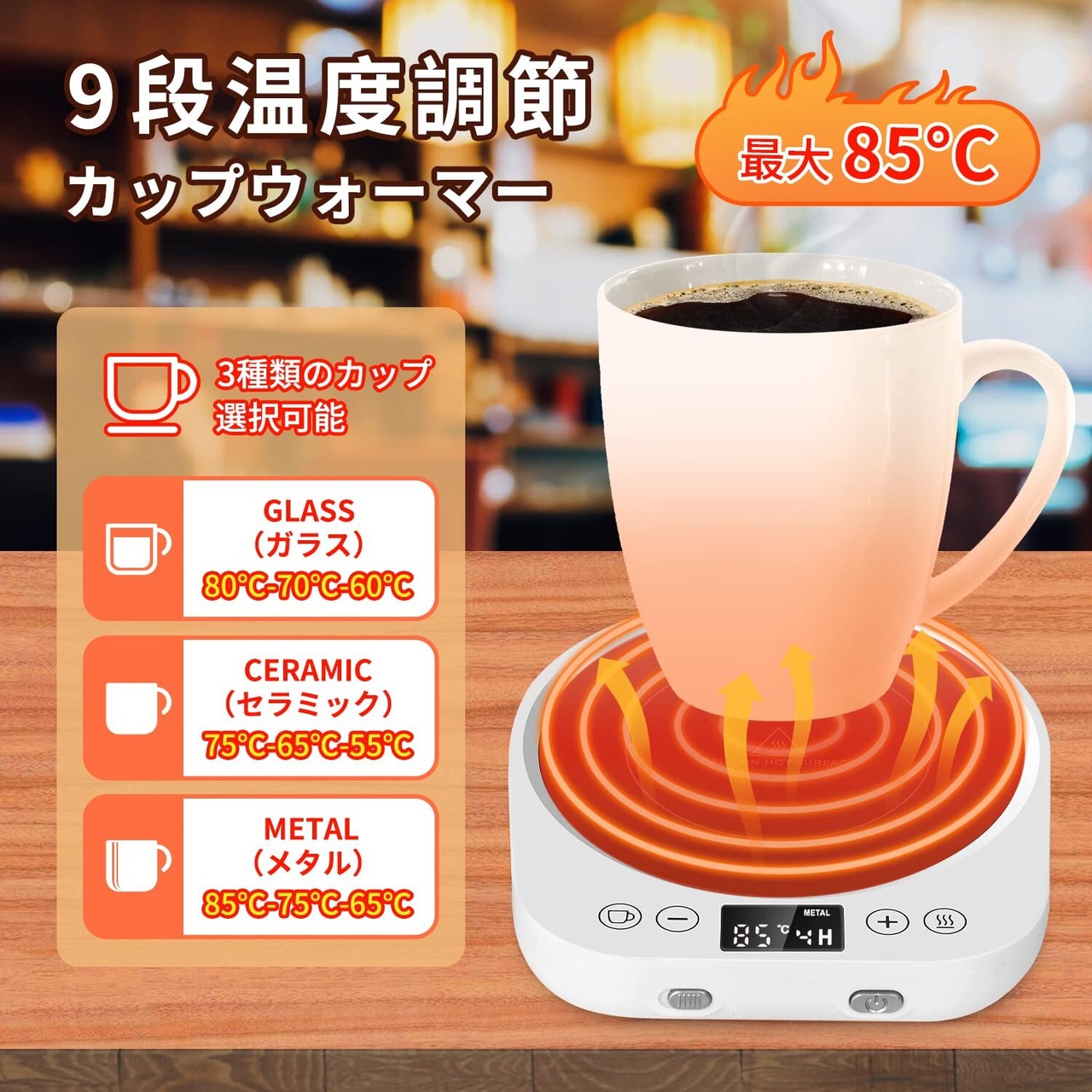 【9段温度調節カップウォーマー 最大85°C】 カップウォーマーとは、電熱を利用してカップなどを温め、飲み物を保温するツールのことです。コーヒーカップウォーマーは3種類のカップを選択できます。各カップ種類は、高・中・低の三段階の温度調節が可能です。お好みに応じてタッチで温度レベルを切り替えます。 (ガラス:80℃-70℃-60℃) (セラミック:75℃-65℃-55℃) (メタル:85℃-75℃-65℃)。温度はこれら3つの素材のために特別に設定されています。カップの素材に合わせて、こまやかに加熱温度を設定できます。
