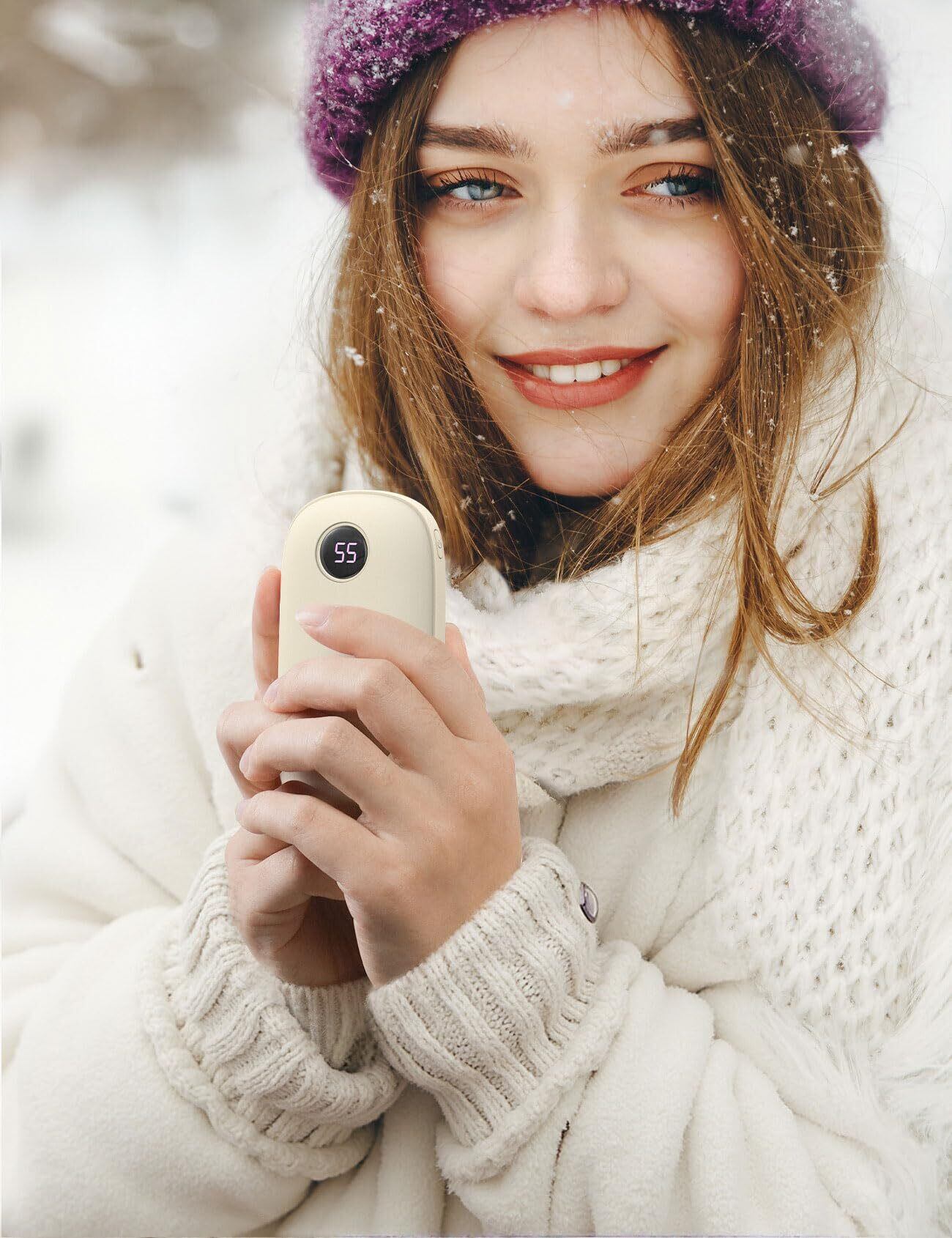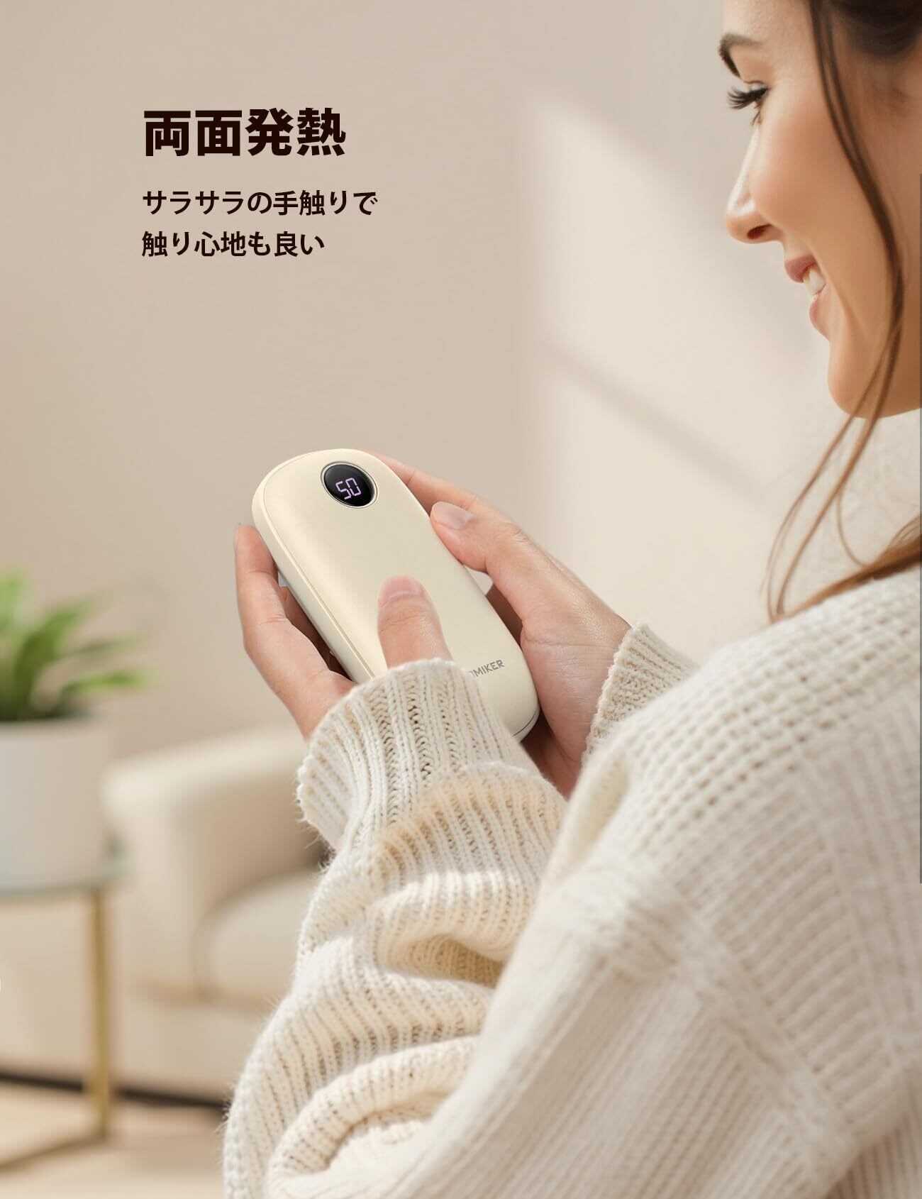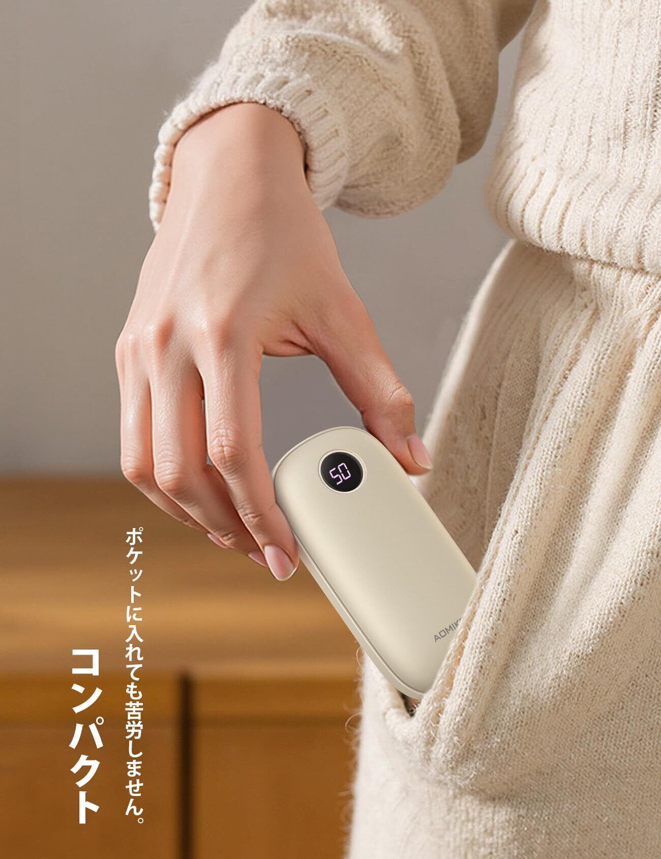 【両面発熱】 充電式カイロ LEDデジタル 温度表示 Aomiker : 3秒急速発熱 3階段 温度調節 電気 かいろ 5V/2A usb-c 充電 4000mAh 電子 懐炉 繰り返し利用 充電式 ホッカイロ あんか 連続 発熱 操作簡単 ストラップ付き アルミ 携帯 小型 軽量 コンパクト ポケットサイズ 持ち運び 通勤 通学 釣り アウトドア 寒さ対策 かわいい 防寒グッズ ベージュ