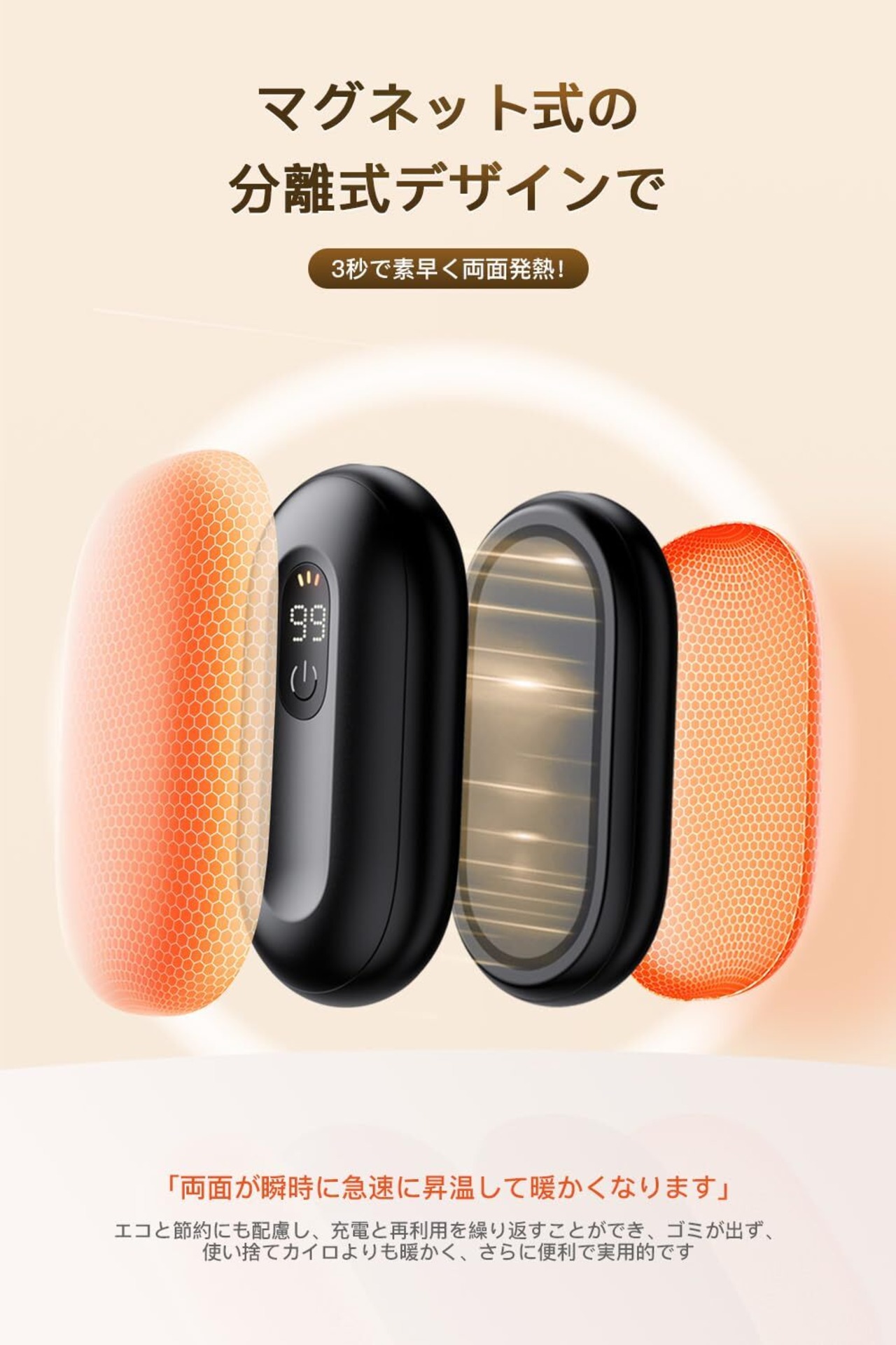 Yokepro 充電式カイロ【新型磁気式/分離式設計】エコカイロ ハンドウォーマー 電気カイロ 高速加熱 3段階温度調節 長時間持続 LED表示 急速充電ポート 電気あんか かいろ 繰り返し使える アウトドア 防寒グッズ お年寄り/子供/家族/友達 クリスマスプレゼント お祝いの贈り物 日本語説明書付き(ブラック)