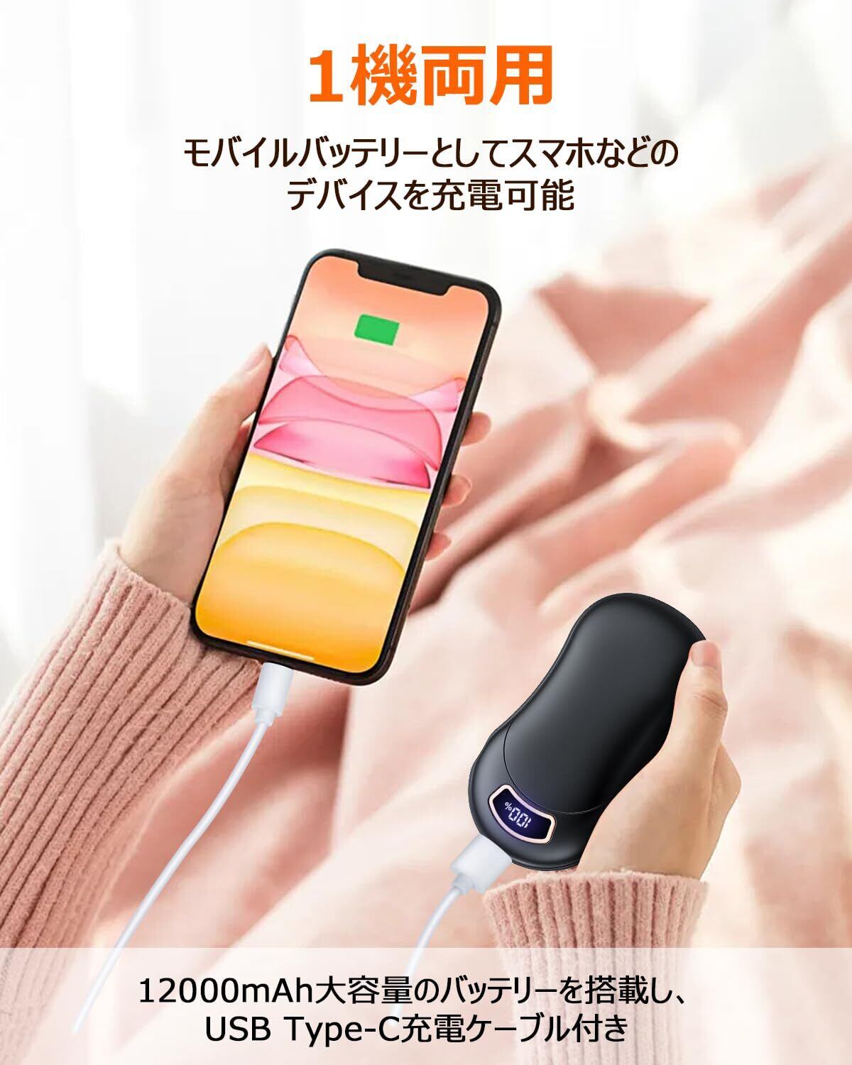 【1機両用】カイロだけではなく、モバイルバッテリーとしてもご利用いただけます。スマホ、イヤホン、タブレットなどの設備を充電できます。旅行または大切な人へのプレゼントに最適!ご注意:USB充電式ハンドウォーマーはカイロとしてご使用の際に電気製品を充電することができません。