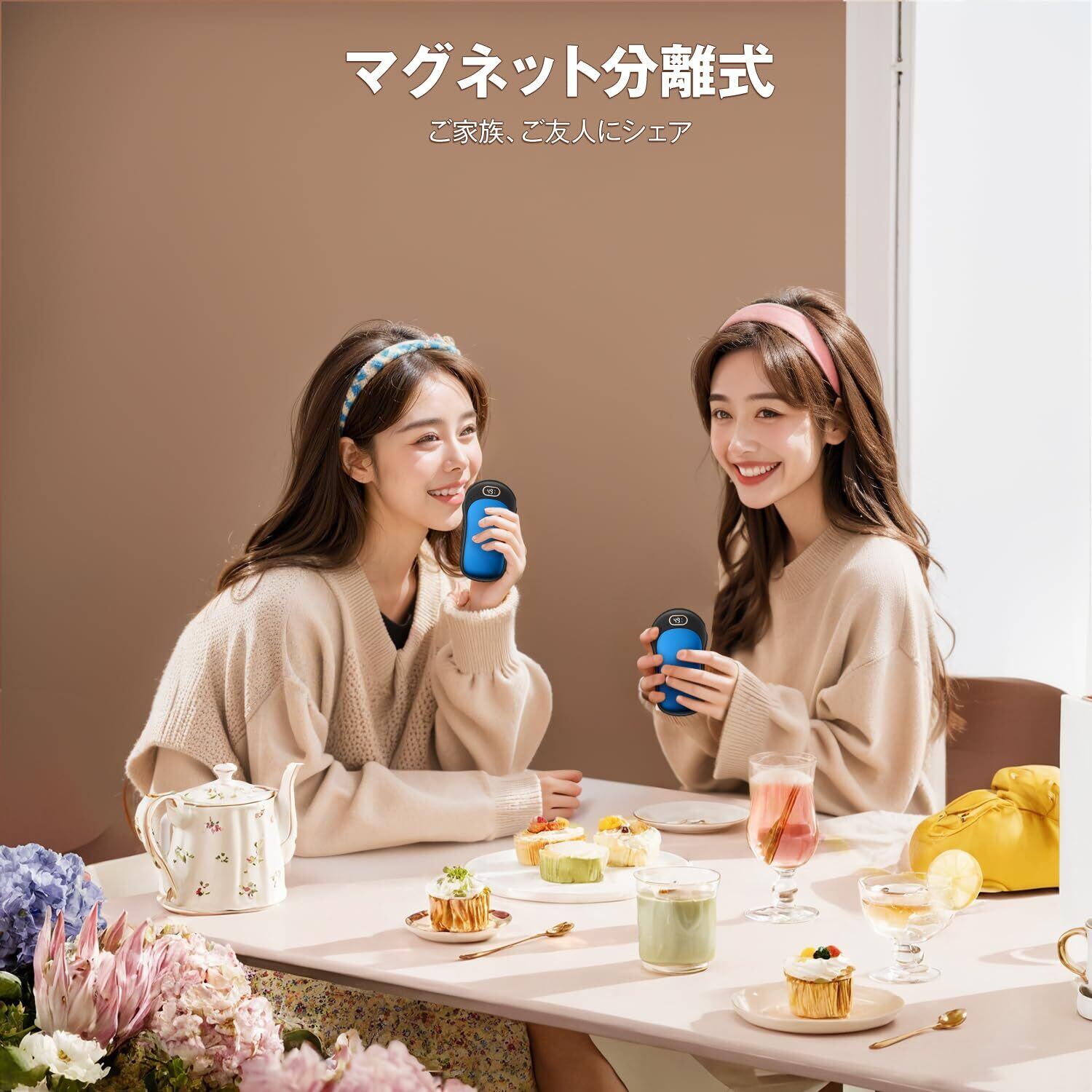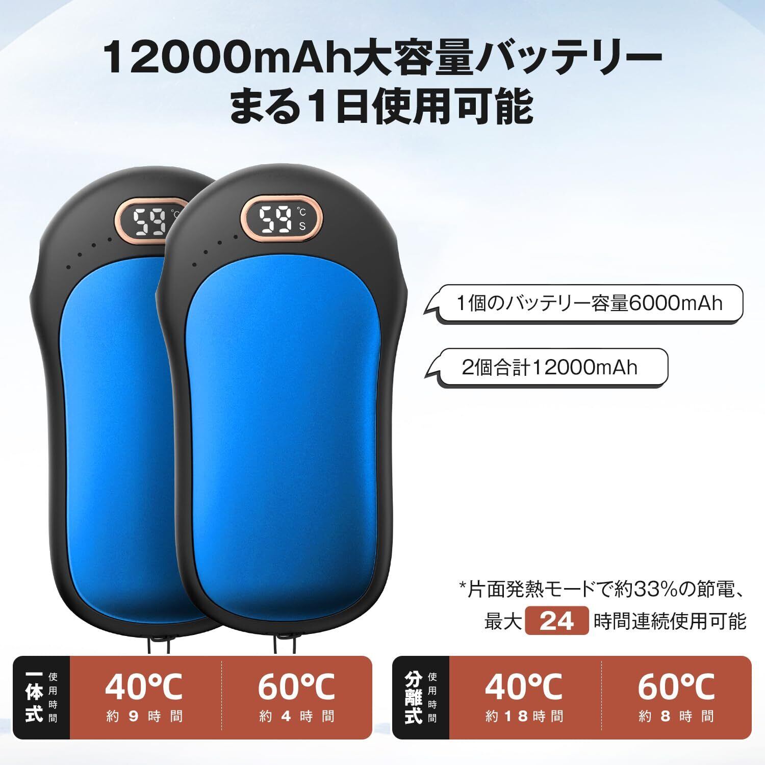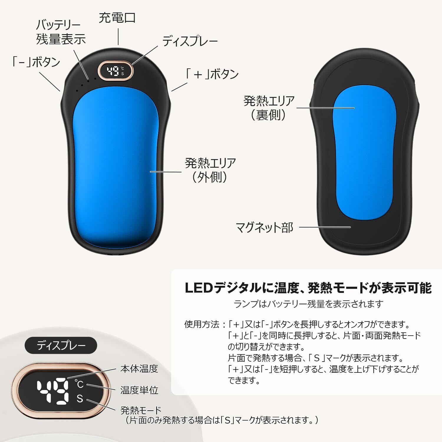 SAMONIC 充電式カイロ 360°全面発熱 1秒急速発熱 マグネット式 分離式 電気カイロ 大容量12000mAh 21段階温度調節 40℃-60℃ 5V/2A LEDデジタル ハンドウォーマー 軽量 コンパクト 防寒 通勤 通学 (青)