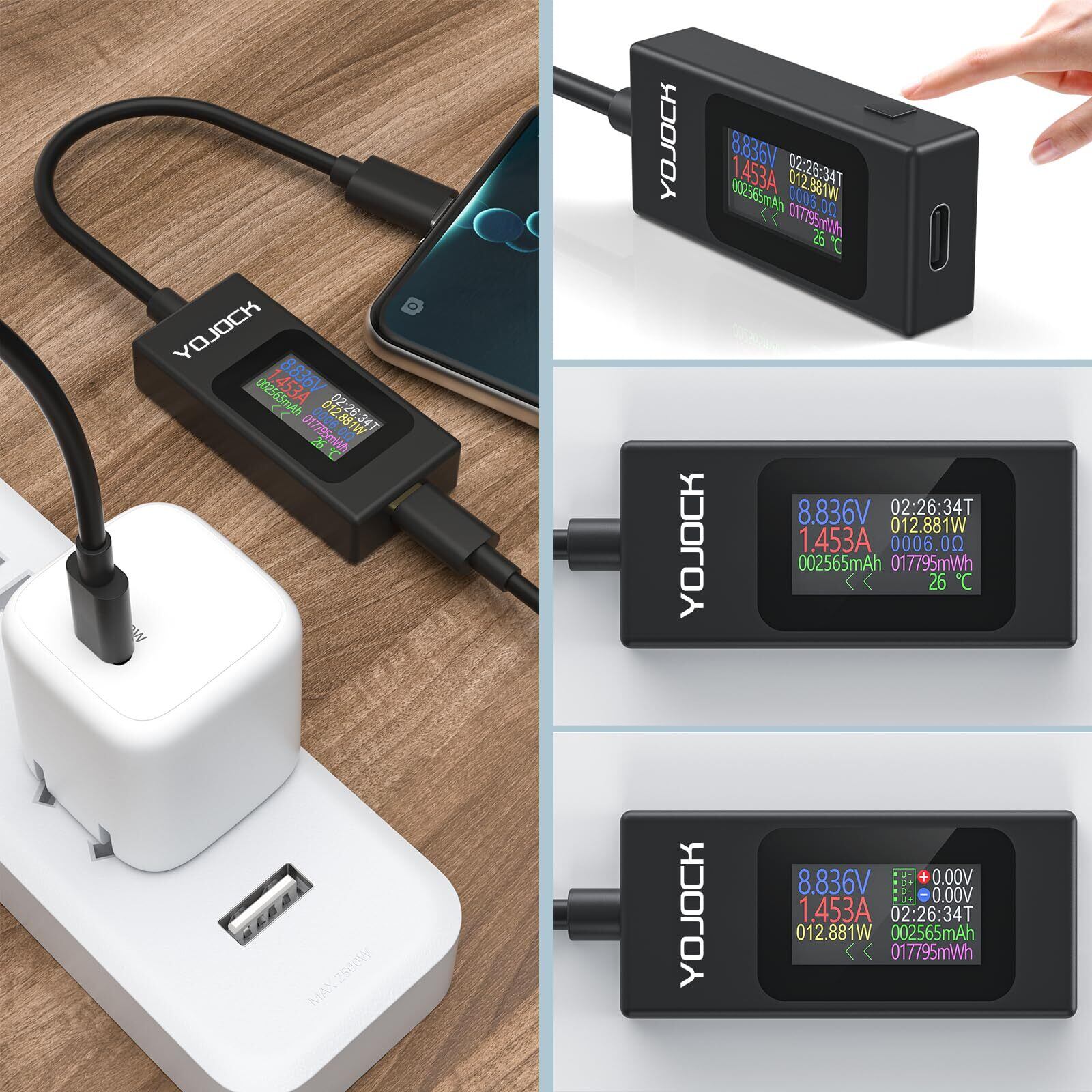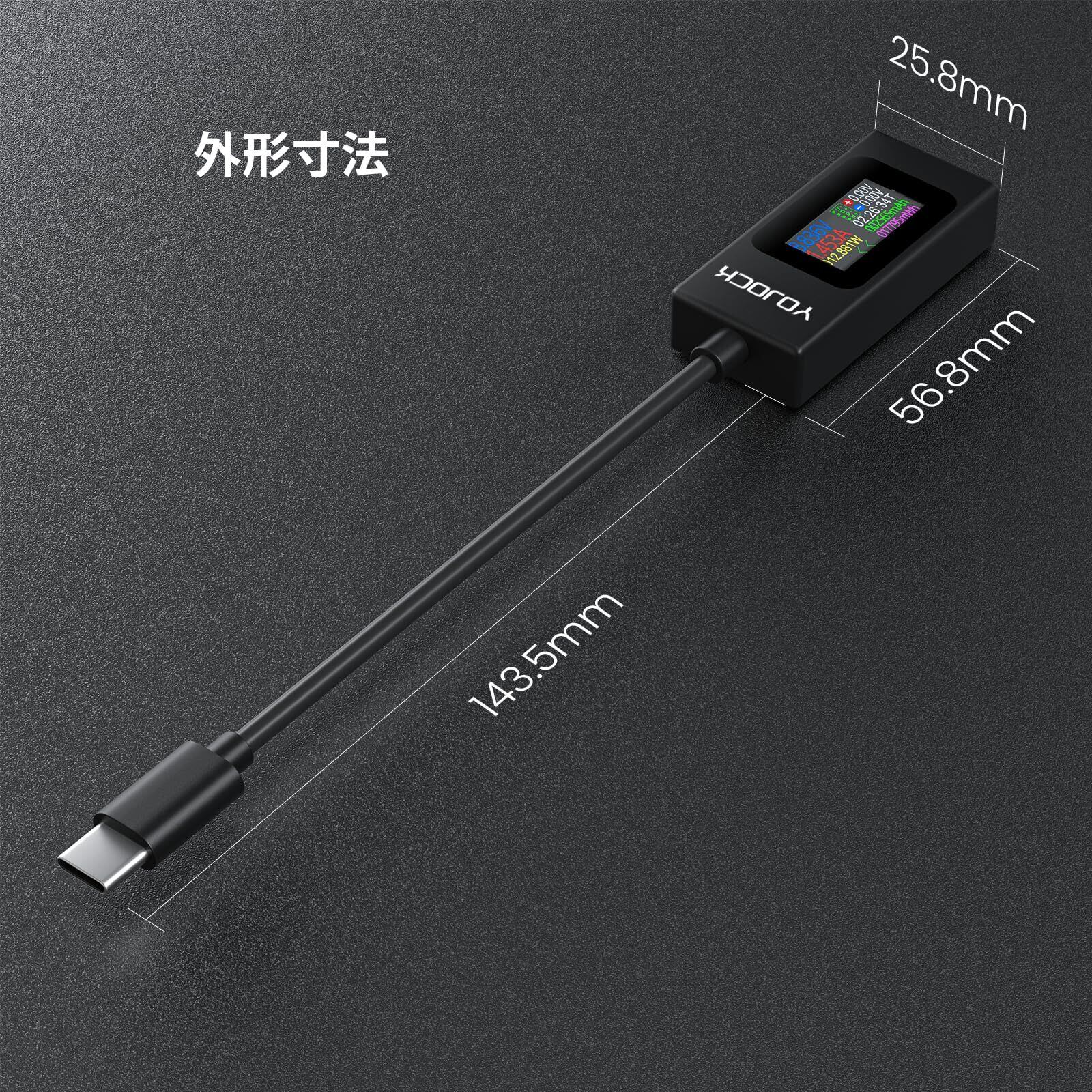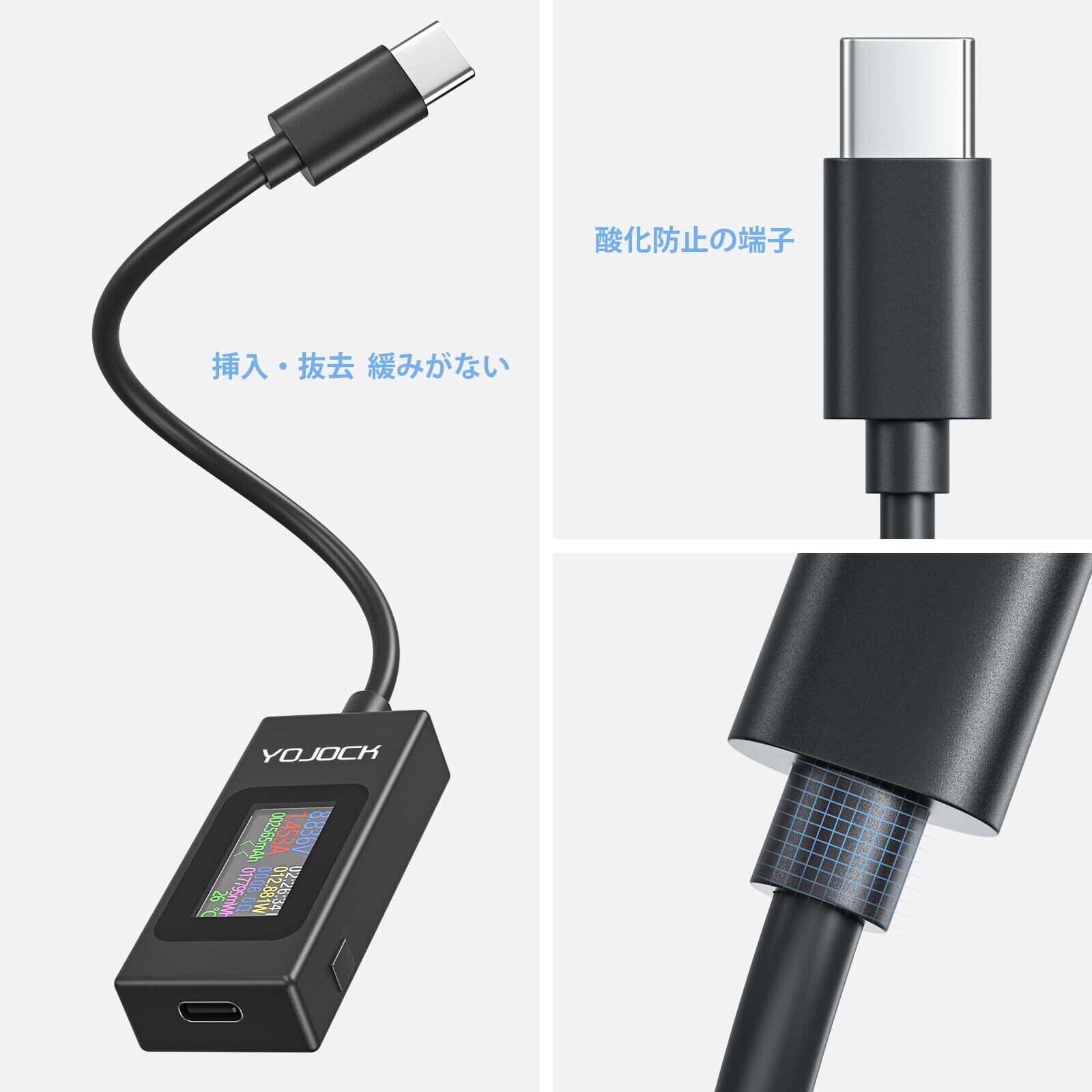 YOJOCK USB電流 電圧チェッカー 電流双方向対応Type-C USBテスター 多機能カラー大画面表示(ケーブル付きモデル)4-30V 0-6.5A