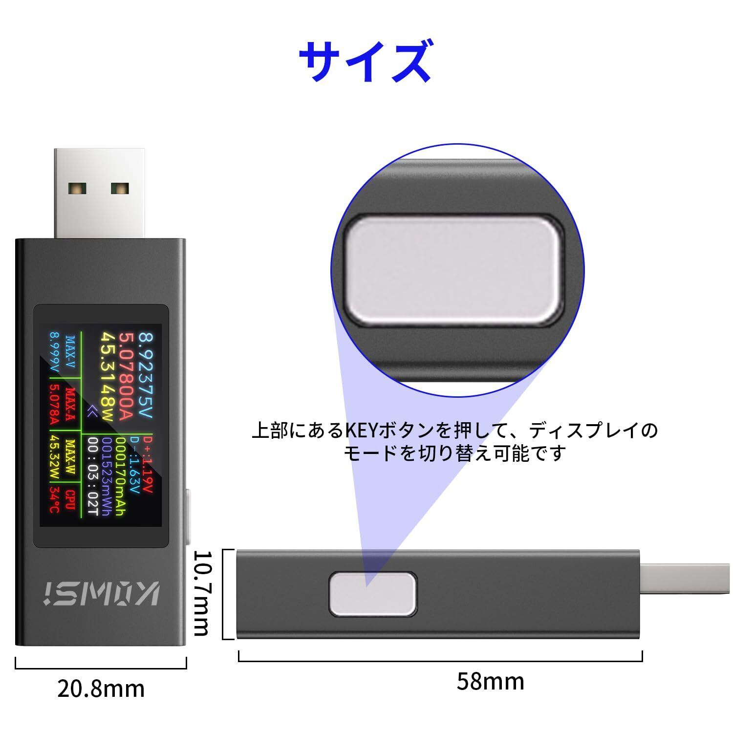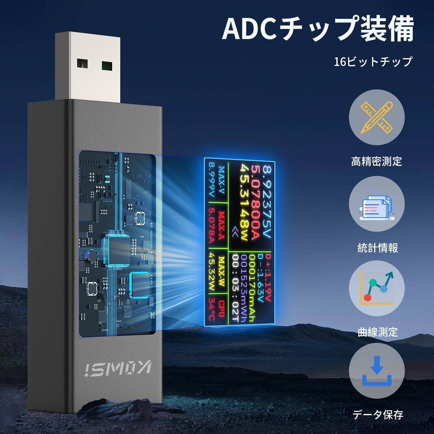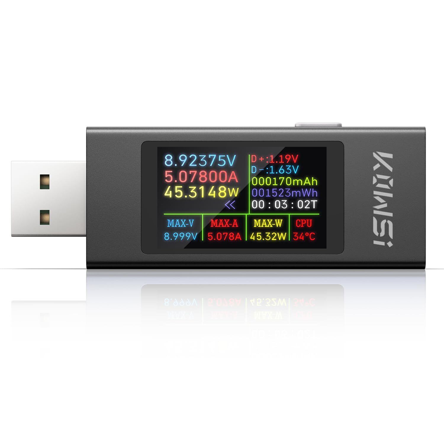 カラー表示:このUSBA電圧計は1.60インチIPSカラーディスプレイを使用し、インターフェースのテキストを鮮明に表示し、他の表示より見やすい