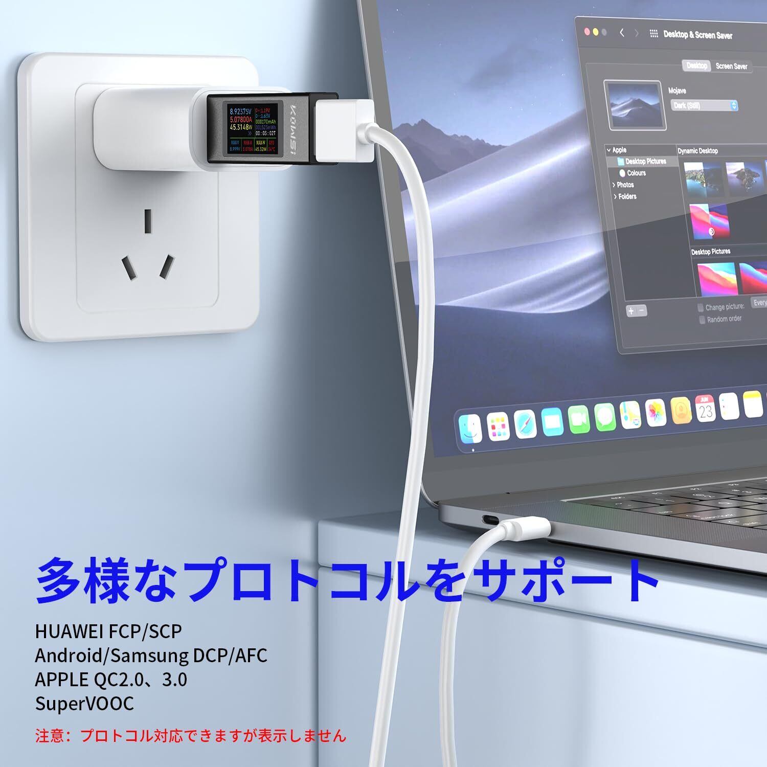 急速充電対応でき:このUSBAテスターはQC2.0 /3.0、FCP、SCP、AFC、PE、DASH、VOOC、SuperVOOCなどの急速充電テストをサポートします。ポートされる最大電流は 12A です。常に 12A に維持することはお勧めしません