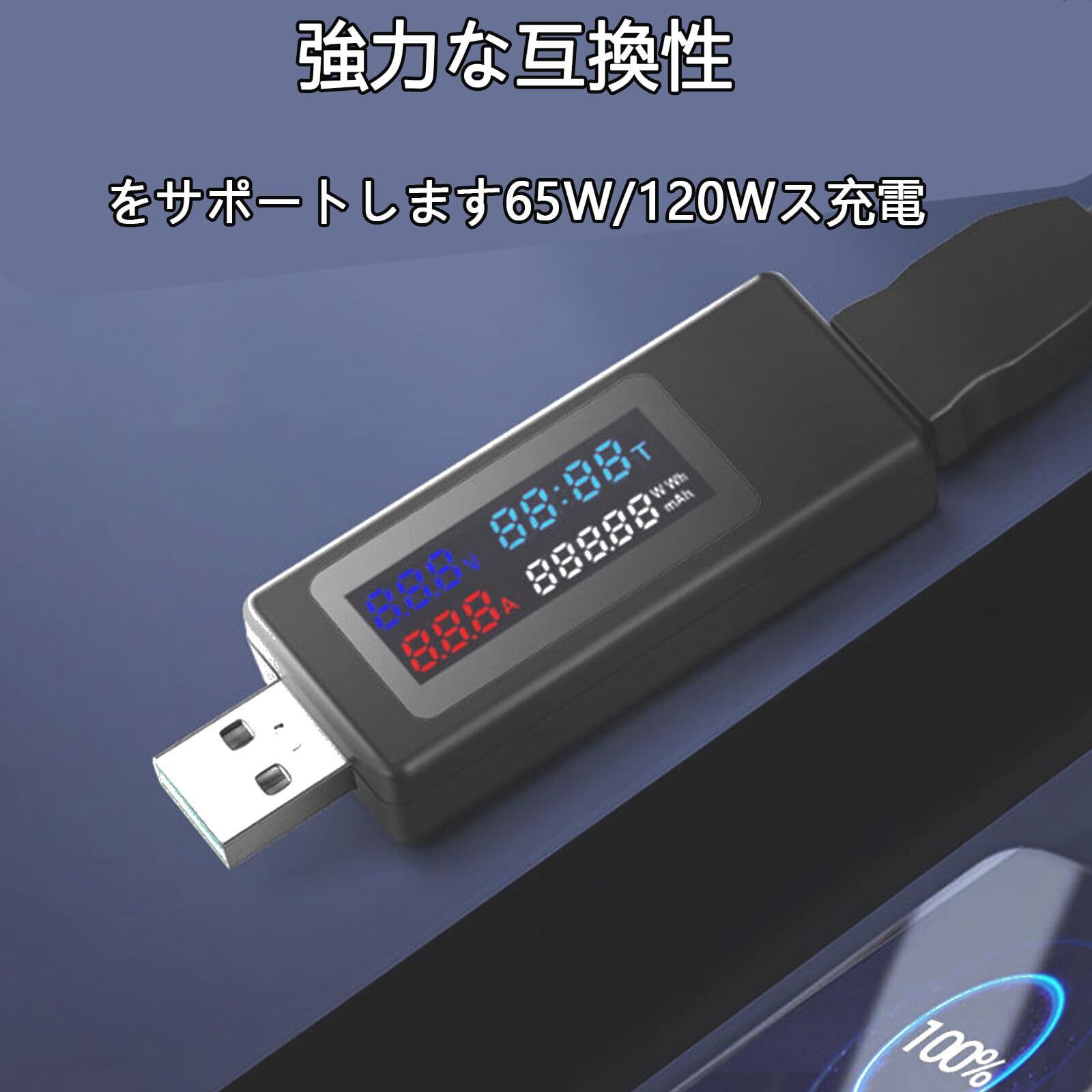 電流電圧チェッカー USB電流電圧テスター USBAワーデジタルテスターカラーディスプ電流検査範囲0-6.5A/0-6.5A 急速充電65W/120W対応でき(ブラック)