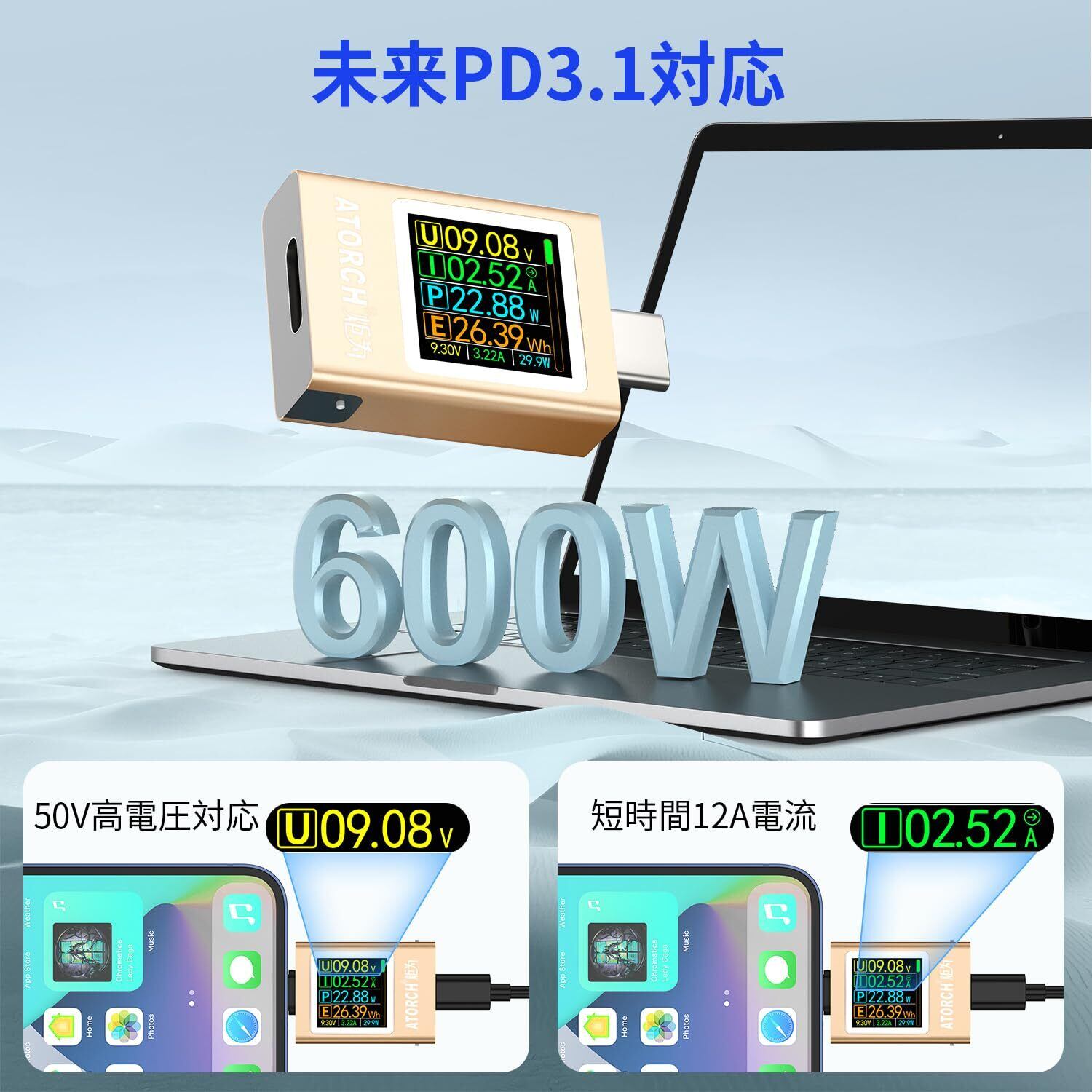 多機能USB-Cテスト:このUSB-C電圧電流テスト機は、電子機器の充電状態をリアルタイムで監視し、電圧、電流、出力功率、充電時間などを確認できます。これにより、電子機器の過電圧や過電流による故障を防ぐことができます。対応範囲は50Vの高電圧、0~12A大電流(ピーク電流)です。