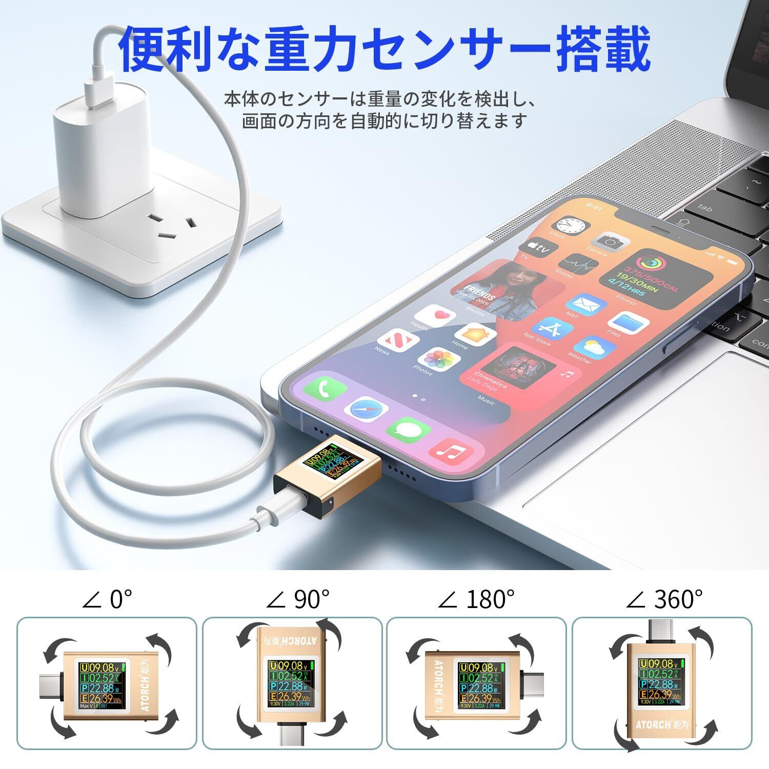 重力センサー搭載:USB電流器は重力センサー機能を搭載します、操作の動きに合わせて自動的に画面が回転し、データの確認がより便利になります。また、画面の向きを固定するロック画面モードも選択でき、画面の向きが変わらないようにできます。