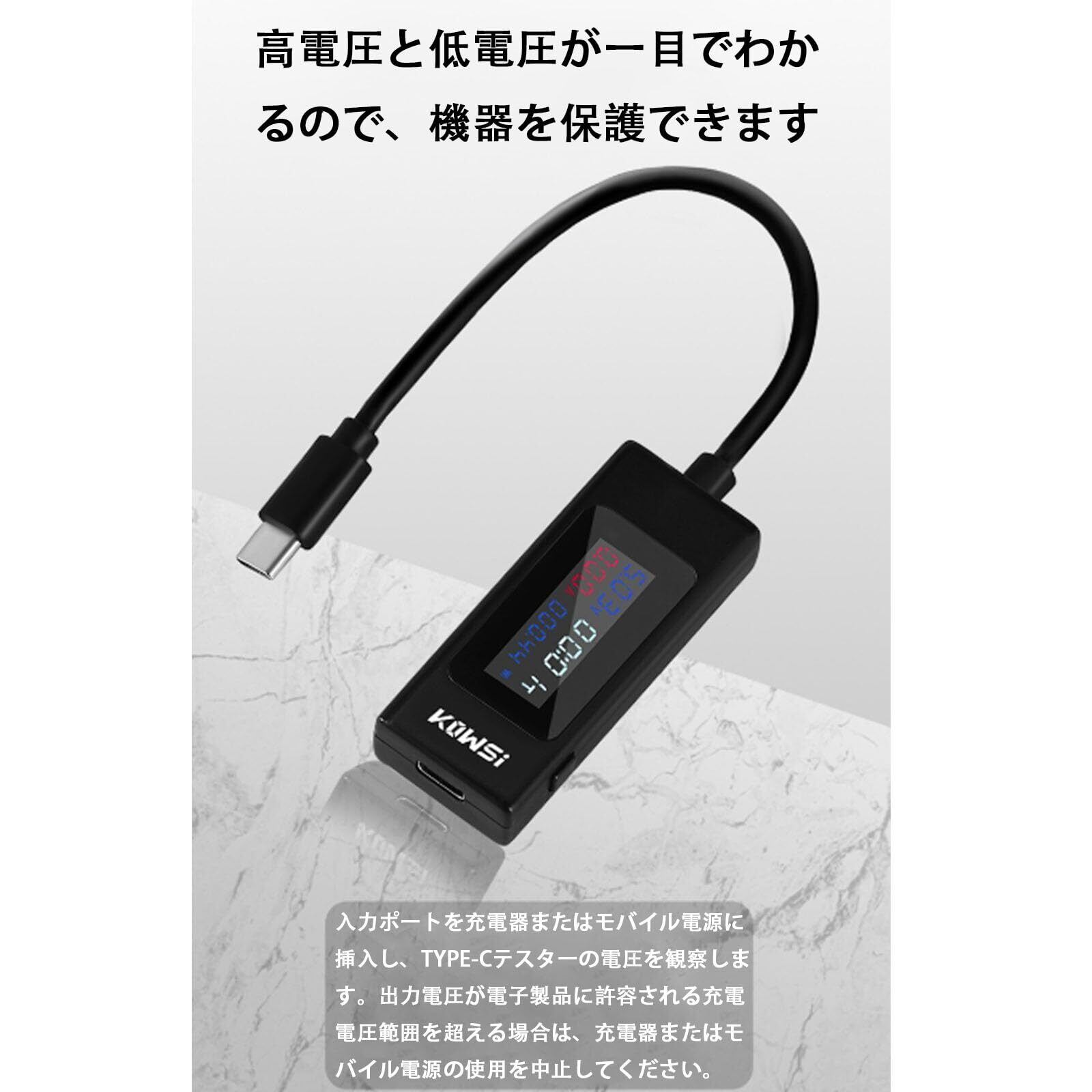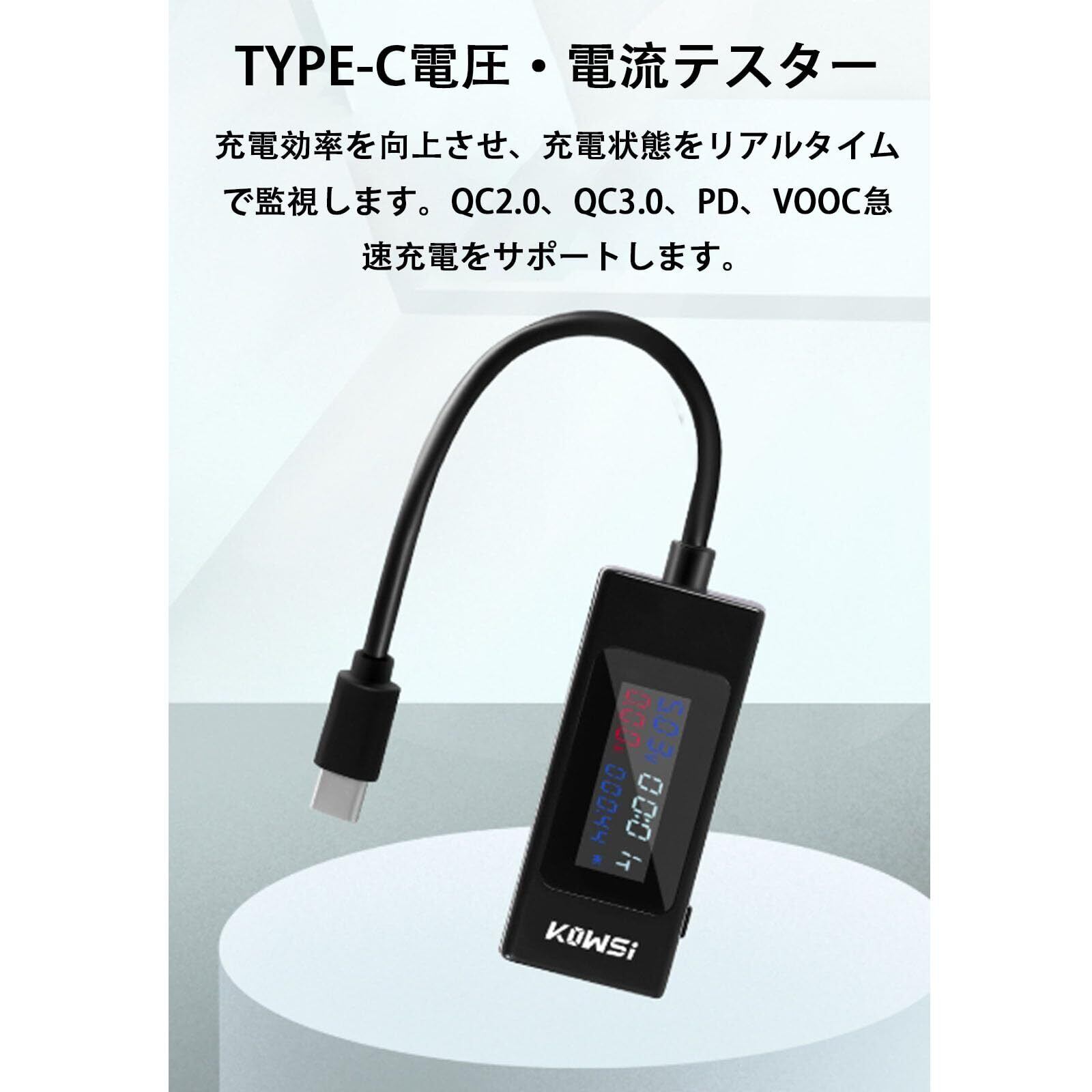USB電圧 電流チェッカー Type-C テスター 電流双方向対応ケーブル付き 電流 電圧 容量など多機能表示 4-30V/0-6.5A 急速充電対応でき QC2.0/3.0 USB Cテスター