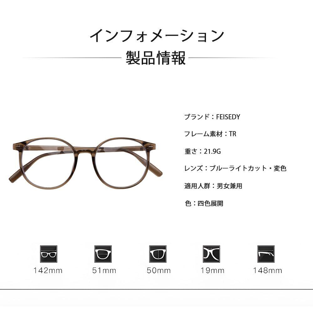 [FEISEDY] ブルーライトカット メガネ 伊達眼鏡 度なし 調光レンズ 変色 屋外サングラス 室内透明 パソコン用 超軽量 紫外線カット ウェリントン おしゃれ レディース メンズ B1238