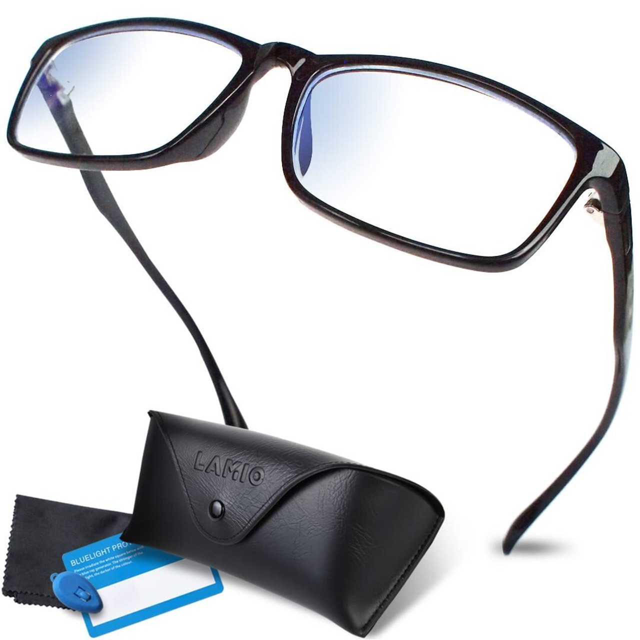 LAMIO ブルーライトカット メガネ PCメガネ 度なし 軽量 UVカット ウェリントン ブラック