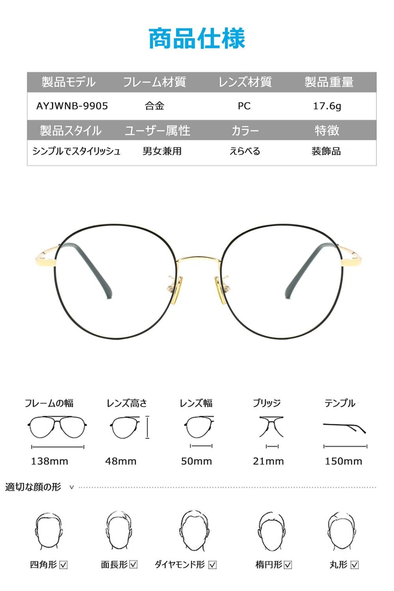 [AIYUJIWU] ブルーライトカット メガネ 伊達 眼鏡 ブルーライト めがね 紫外線カット UVカット 度なし おしゃれ pcメガネ パソコン用メガネ メンズ レディース 男女兼用 軽量