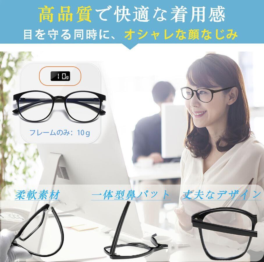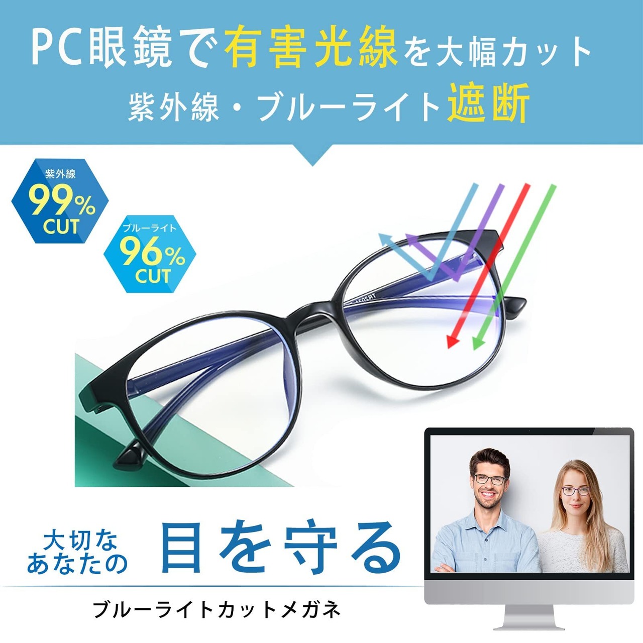 【目にやさしい】PCやスマホ、TVからの ブルーライトは視力悪化やドライアイ、眼精疲労、メラニンの生成によって起こる浅い睡眠などの原因となるので、PCメガネはひとつでもあてはまったらブルーライトから目を保護します。着用することで、まぶしさやちらつきを軽減する効果が期待でき、長時間の作業による目の疲れにお悩みの方をサポートしてくれます。