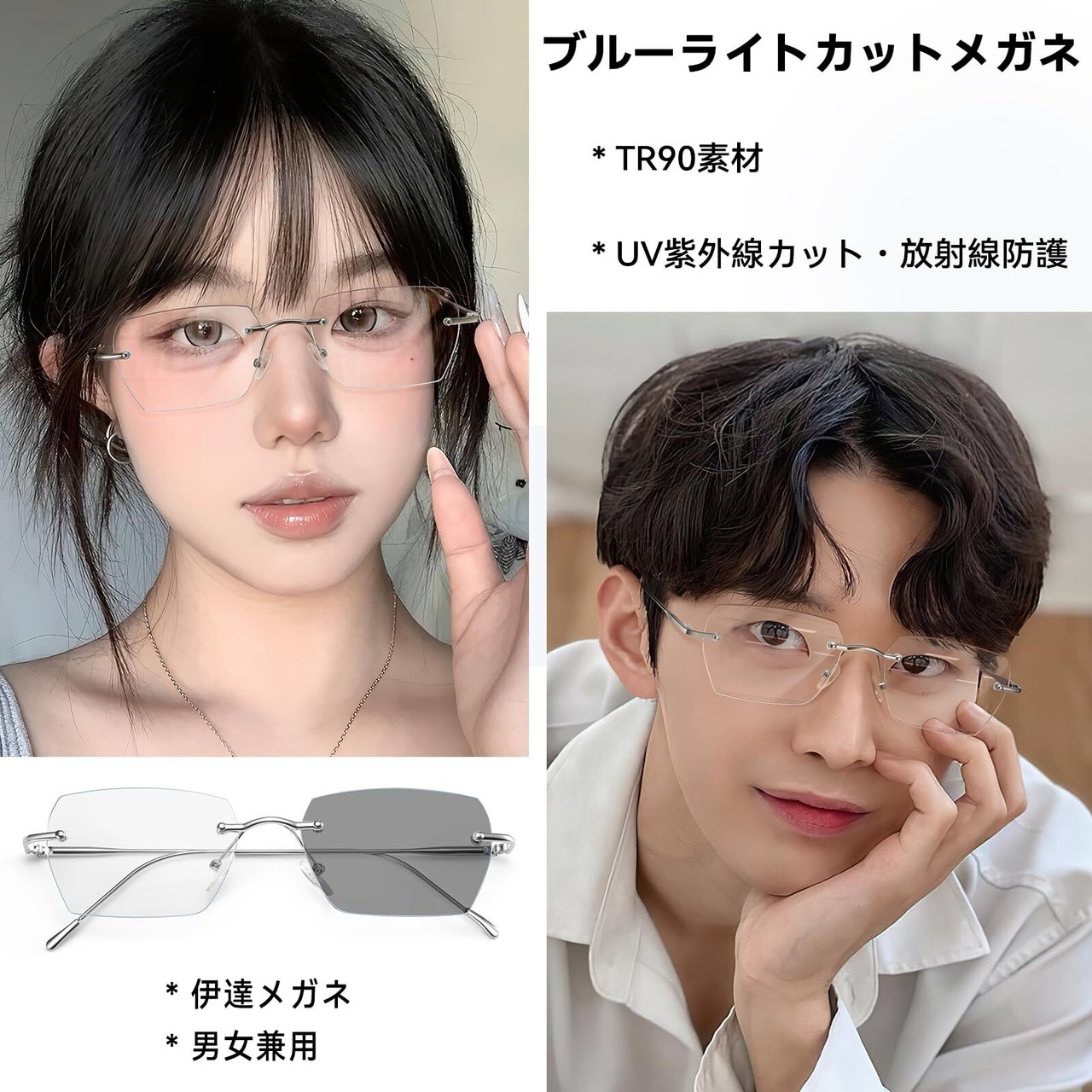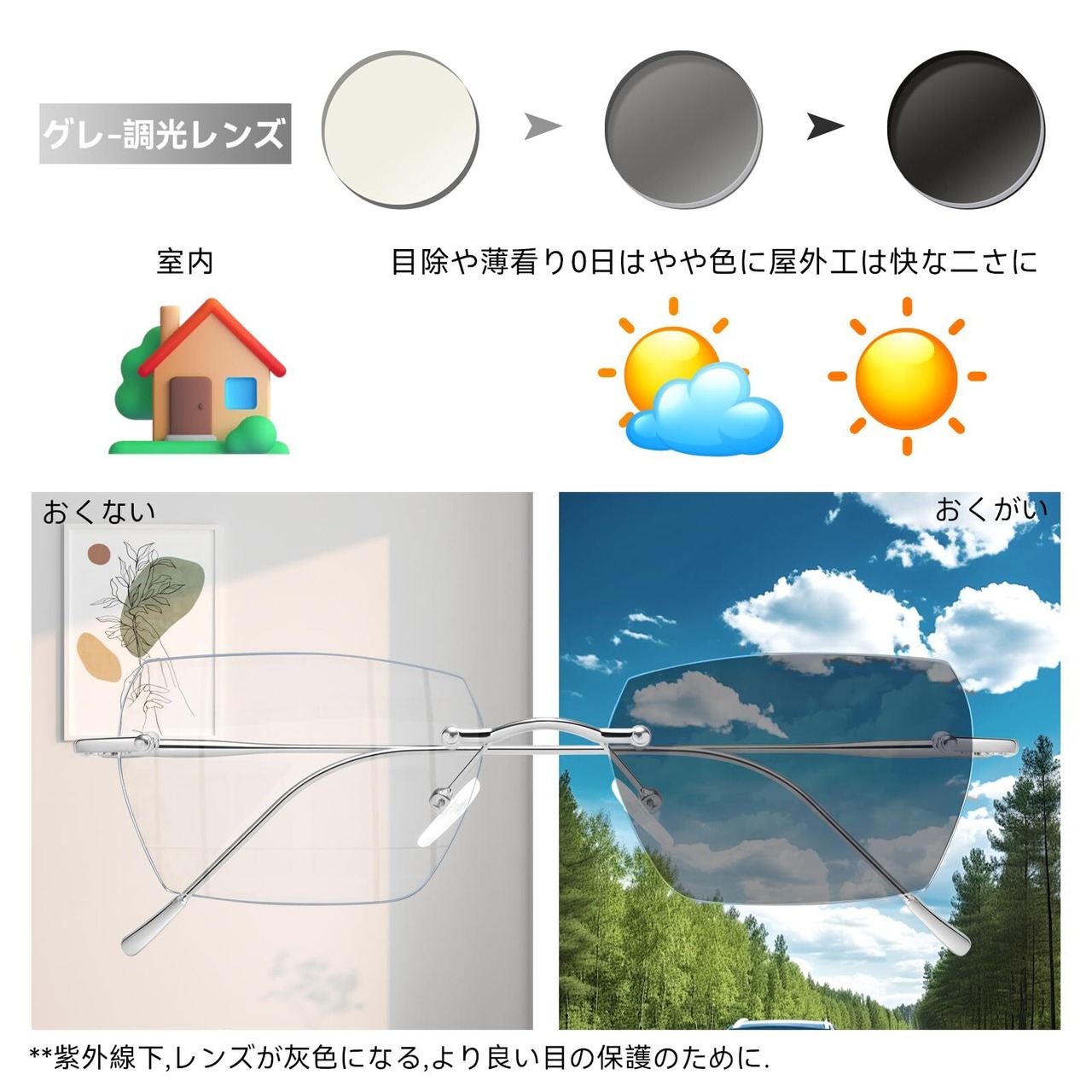 [Dollger] クリア フチなし 調光メガネ 伊達メガネ 度なし パソコン用 超軽量 紫外線カット おしゃれ レディース メンズ