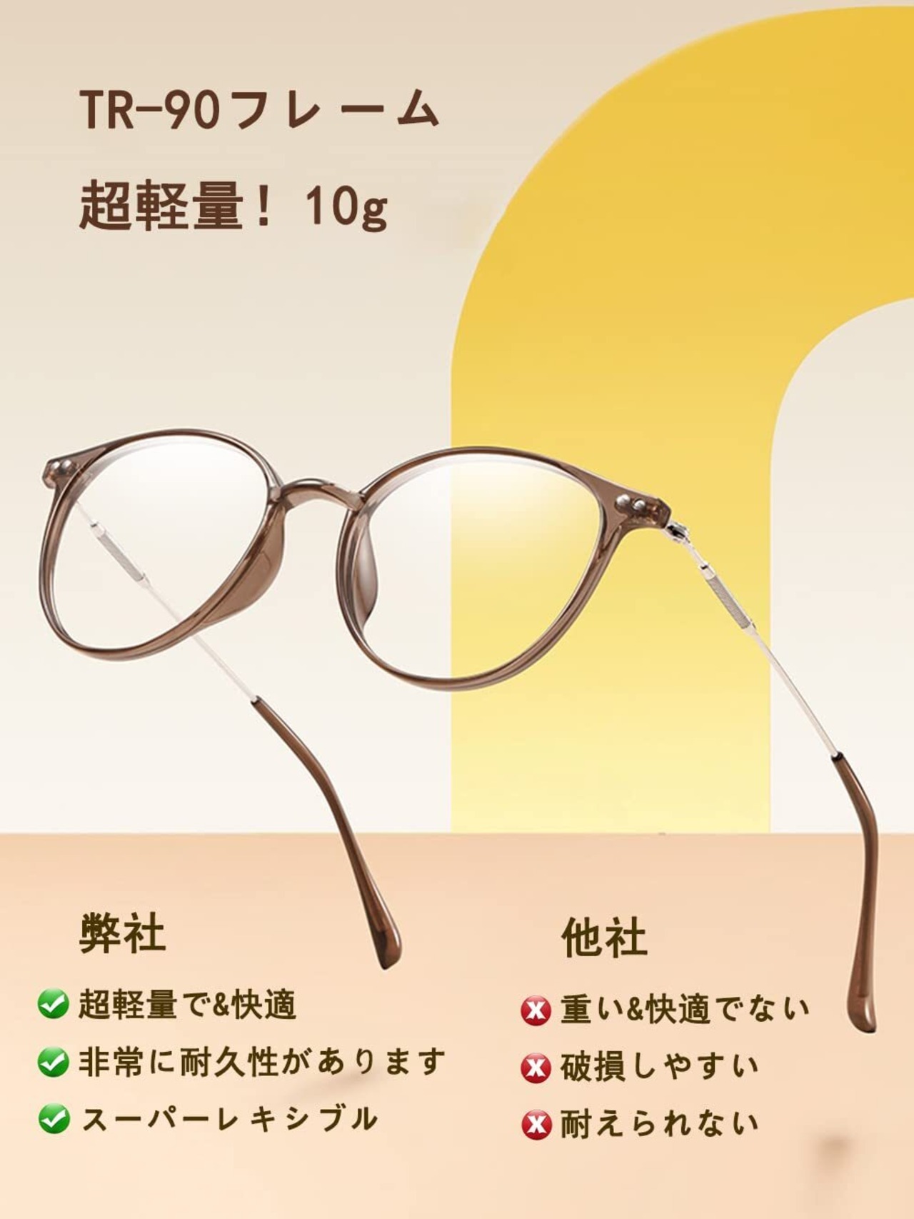 [SHUNHANG] ブルーライトカットメガネ PCメガネ 眼精疲労防止 10g超軽量 ブルーライトカット 丸い眼鏡 おしゃ れ 伊達メガネ 度なし オフィス パソコン用メガネ ブルーライト防止 男女兼用