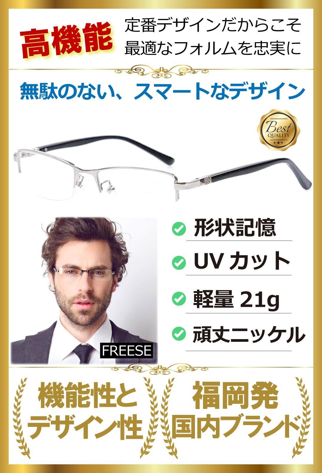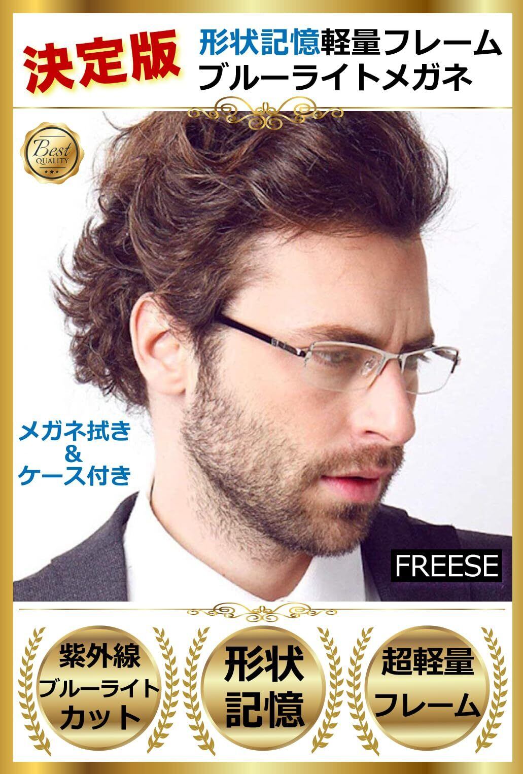 [FREESE] ブルーライトカットメガネ PCメガネ 伊達メガネ メンズ 超軽量 形状記憶フレーム ハーフリム