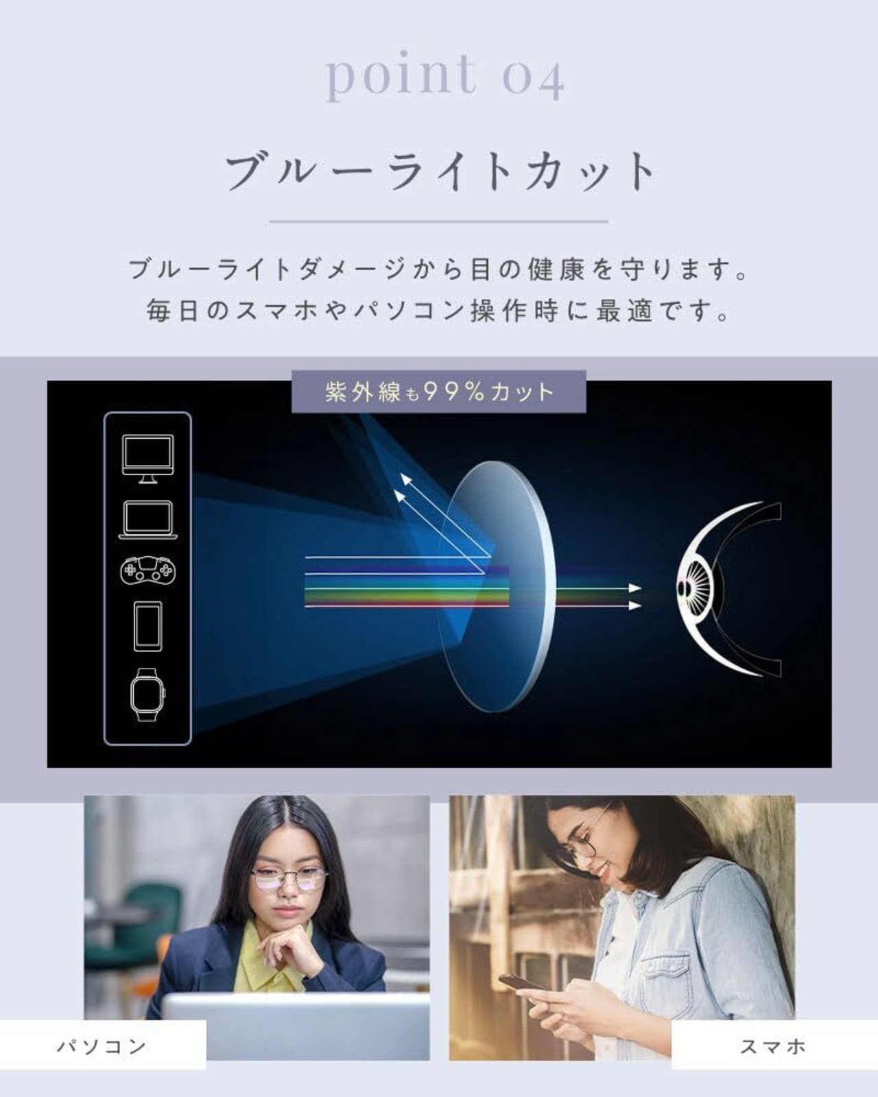 レンズ:UV、ブルーライトカット