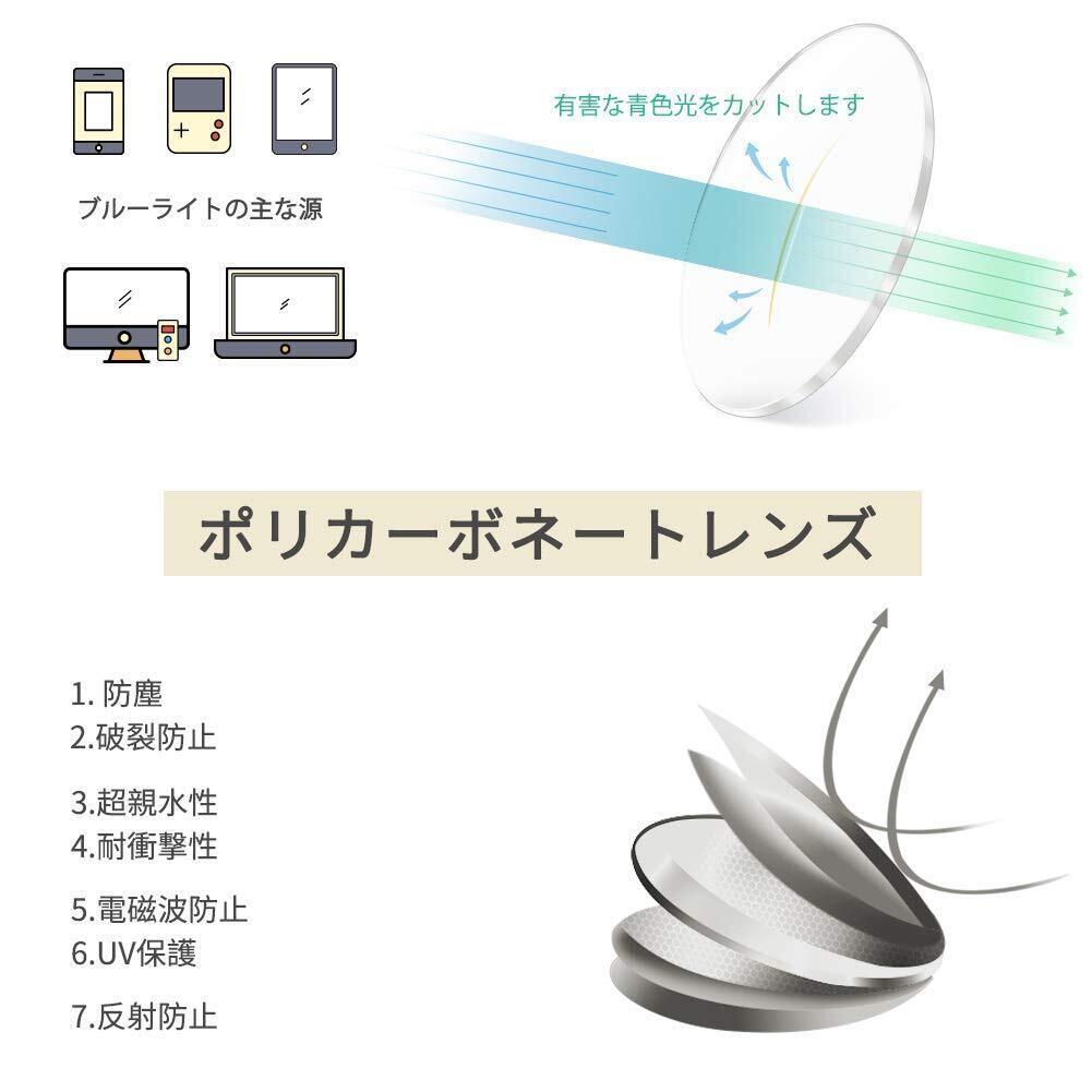 ブルーライト対策:ブルーライトカットメガネは、有害なブルーライトと紫外線をカットし、目をやさしく守ることができま す。さらに、目の周りの皮ふにも保護効果があり、スマホまたはPCを長時間使う方におすすめです