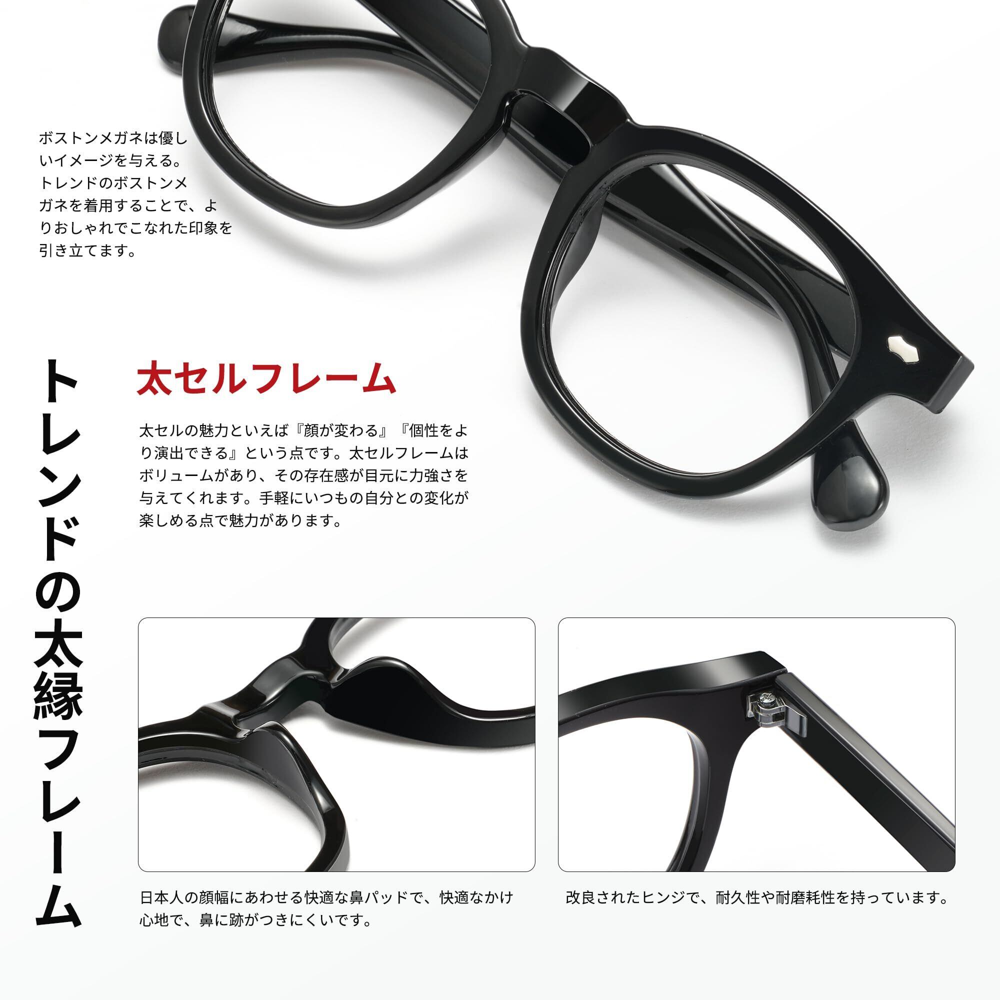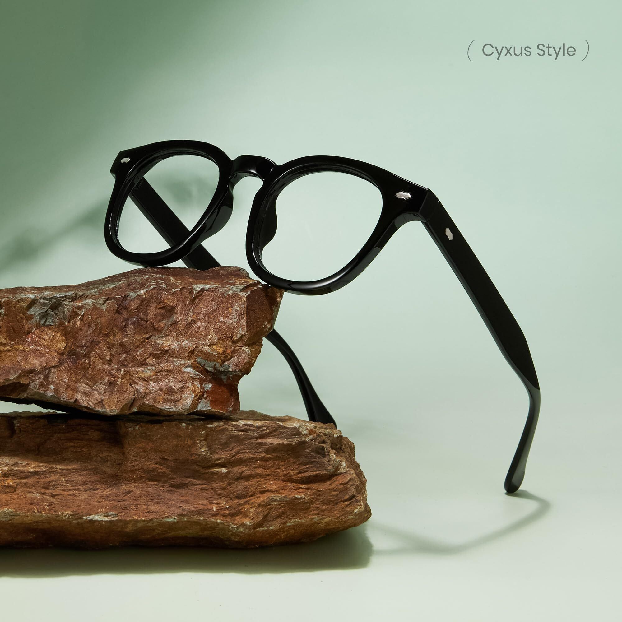 [Cyxus] 太セルフレーム 伊達メガネ ブルーライトカット 度なし ラウンド UVカット 紫外線対策 お洒落 男女兼用 8155