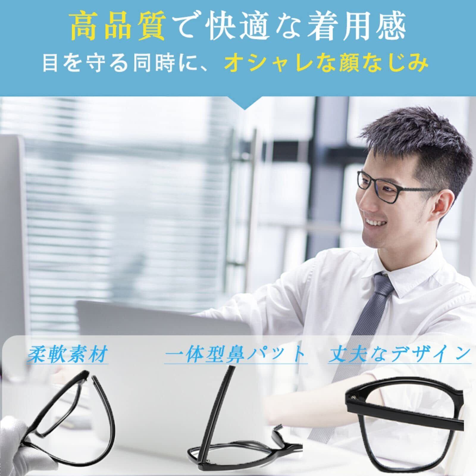 【目への負担軽減・疲れ目の防止】パソコンやスマホの画面から発するブルーライトは、浴びすぎると睡眠の質の低下などの体調不良に繋がる恐れもあり、目への負担を軽減するためにも、PCにはブルーライトカットフィルターの導入や、日常的にブルーライトカットメガネを着用していただきたいのです。