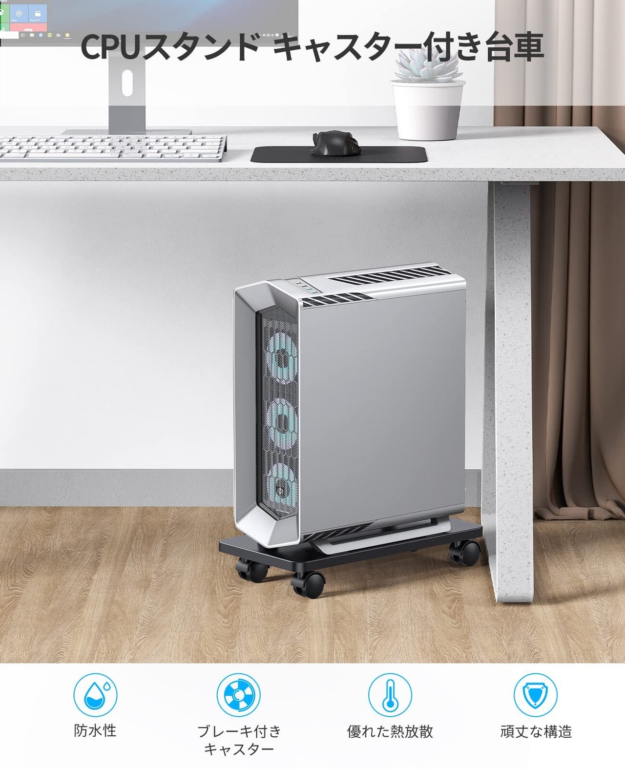 【良い便利性】4つのキャスター付きなので掃除やメンテナンスもスムーズな移動ができます。女性一人でも簡単に移動できるワゴンタイプのCPUスタンドです。そしてPC本体を床面に置く、デスクトップのために大量のスペースを節約します。