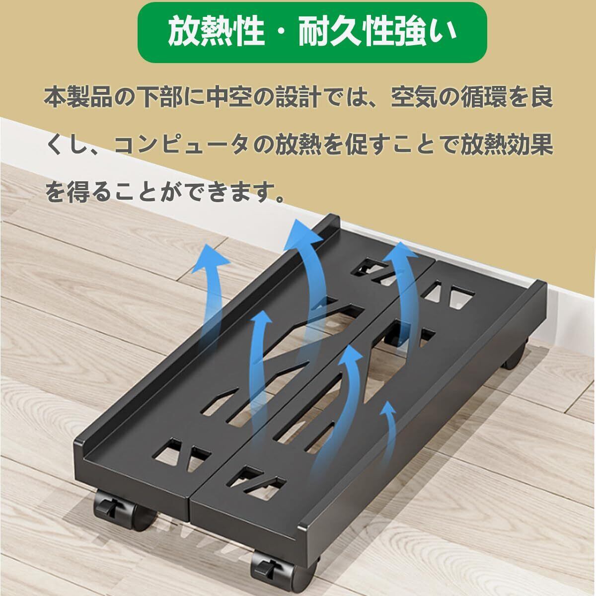 RUI XINキャスター付きCPUスタンド PCキャスター サーバー PC収納ボックス PCワゴン デスクトップ用 パソコン 会社 オフィス 自宅 デスクトップ コロ 灰尘对策放熱 落下防止 (Black)
