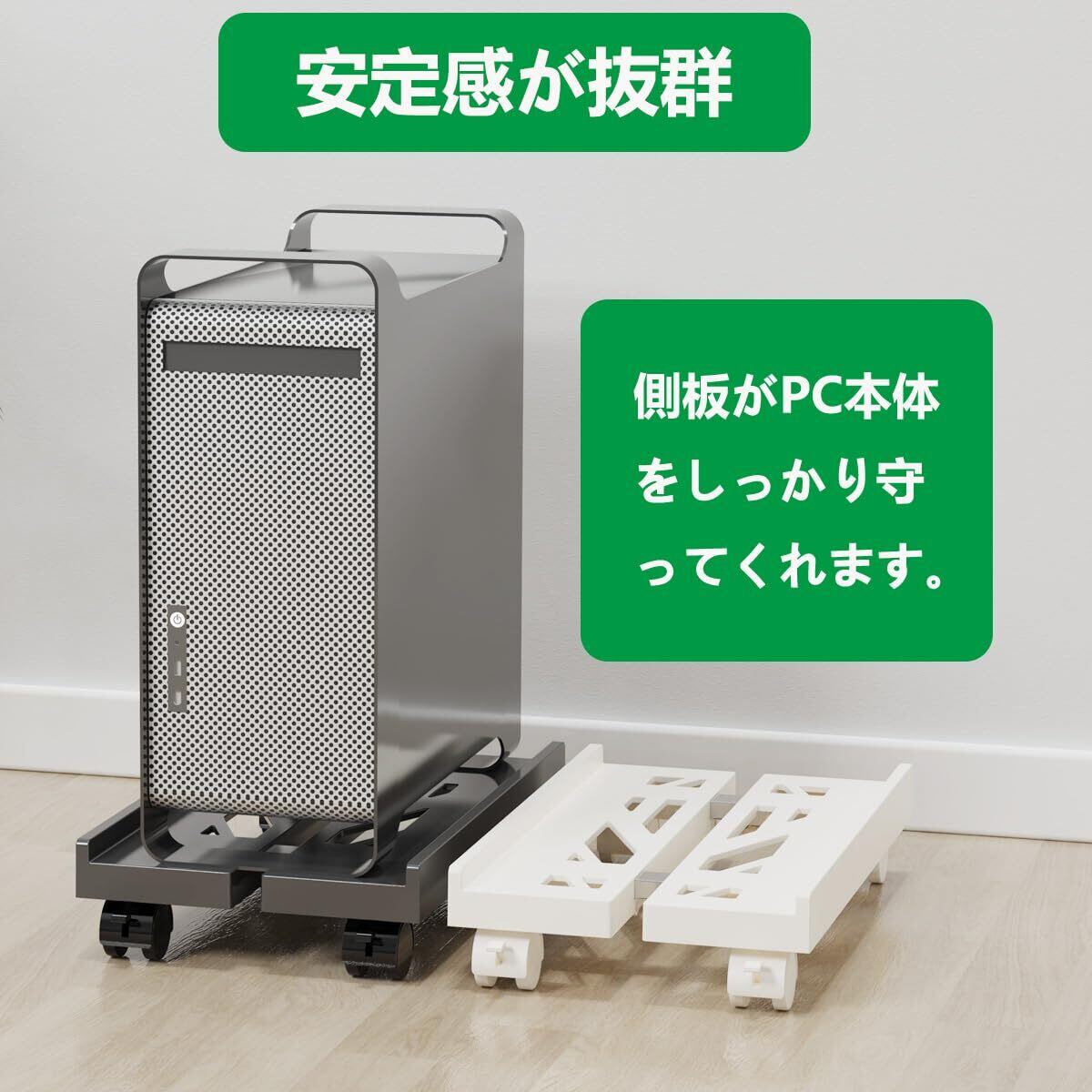 【 キャスター2輪にストッパー付き 】ストッパー付きのキャスターを備えてい るので楽に引き出して固定することが出来ます。重いCPUも簡単に移動できます 。いざという時に心配という方にも安心です。