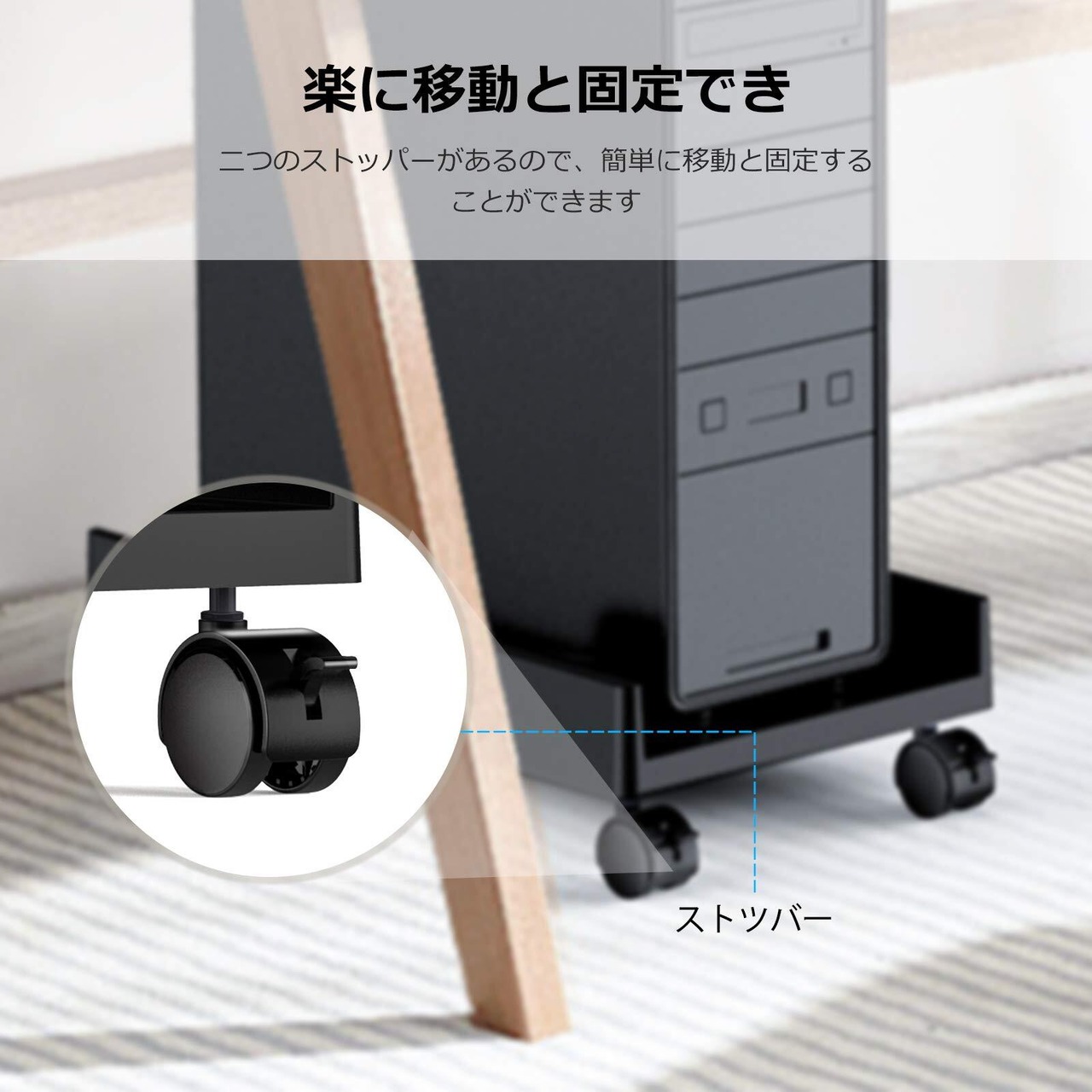 【PC周りやデスクのお掃除が楽しくなる】キャスターが付いていると重いPCでも楽に移動ができ、さらに掃除やメンテナンスもできるからです。女性一人でも簡単に移動できるワゴンタイプのcpuスタンドです。
