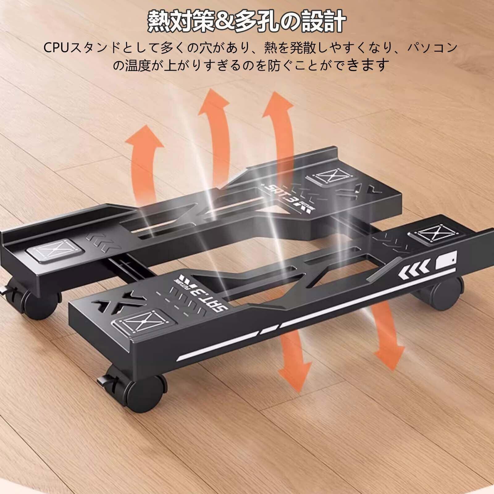 BESSTER CPUスタンド PCワゴンキャスター付き台車 デスト下PCスタンド デスクトップ pc 置き台 パソコンサーバーラック 足元収納 移動可能 熱を発散 多用途 熱対策 スクトップ用 オフィス・自宅・会社用 サイズ43cm*19.5-29cm サイズ無段階調節 耐荷重80kg (ブラック)