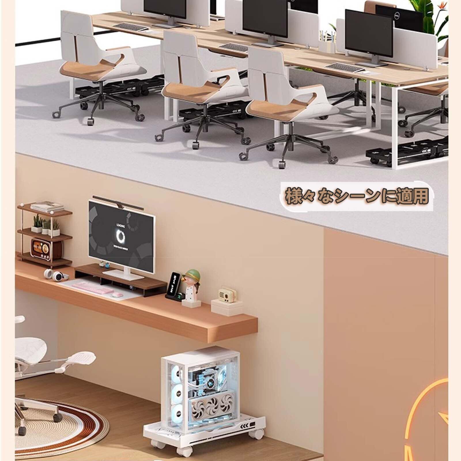 取り付け簡単:一体化台座、煩雑な取り付けの過程はなく、キャスターだけ装着すれば使える。こんなシーンで活躍!オフィス/書斎のPC配置整理、サーバールームの機器管理、重いAV機器や工具の移動補助