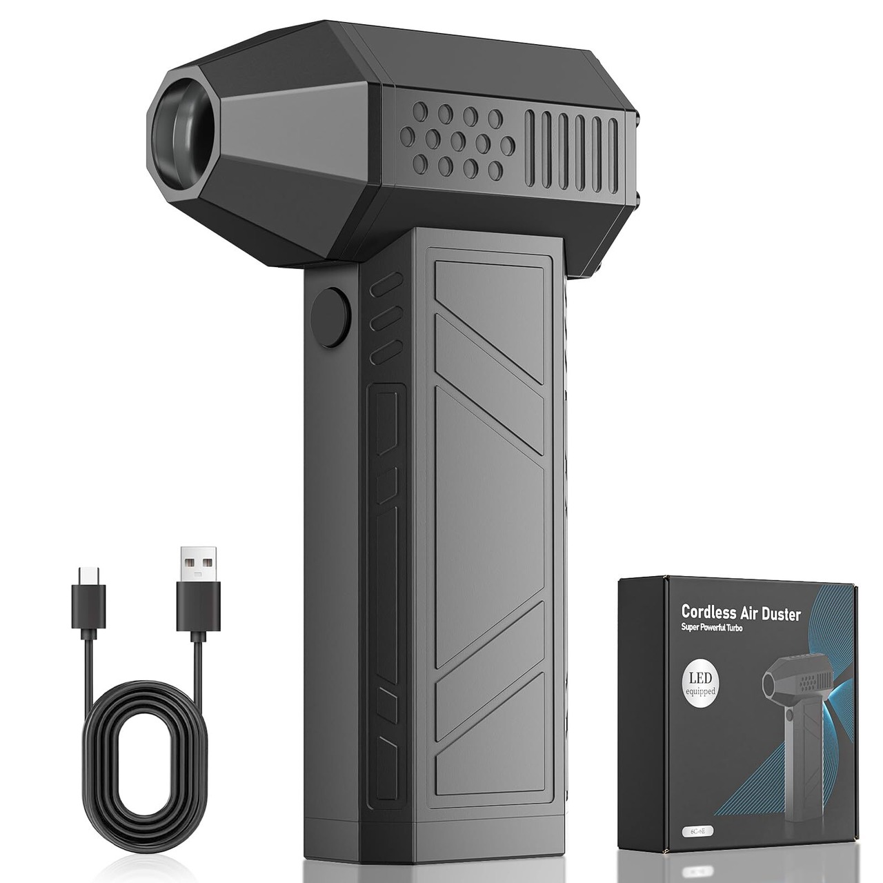 KOJIHOMU エアダスター ブロワー 洗車 【超小型で爆風】電動エアダスター 4段階風量調整 超強力 最大風速52m/s 5000mAh大容量バッテリー 充電式 エアダスター LEDライト付き PC掃除/空気入れ/キーボード/エアコン/洗車用 TypeC急速充電 (ブラック)
