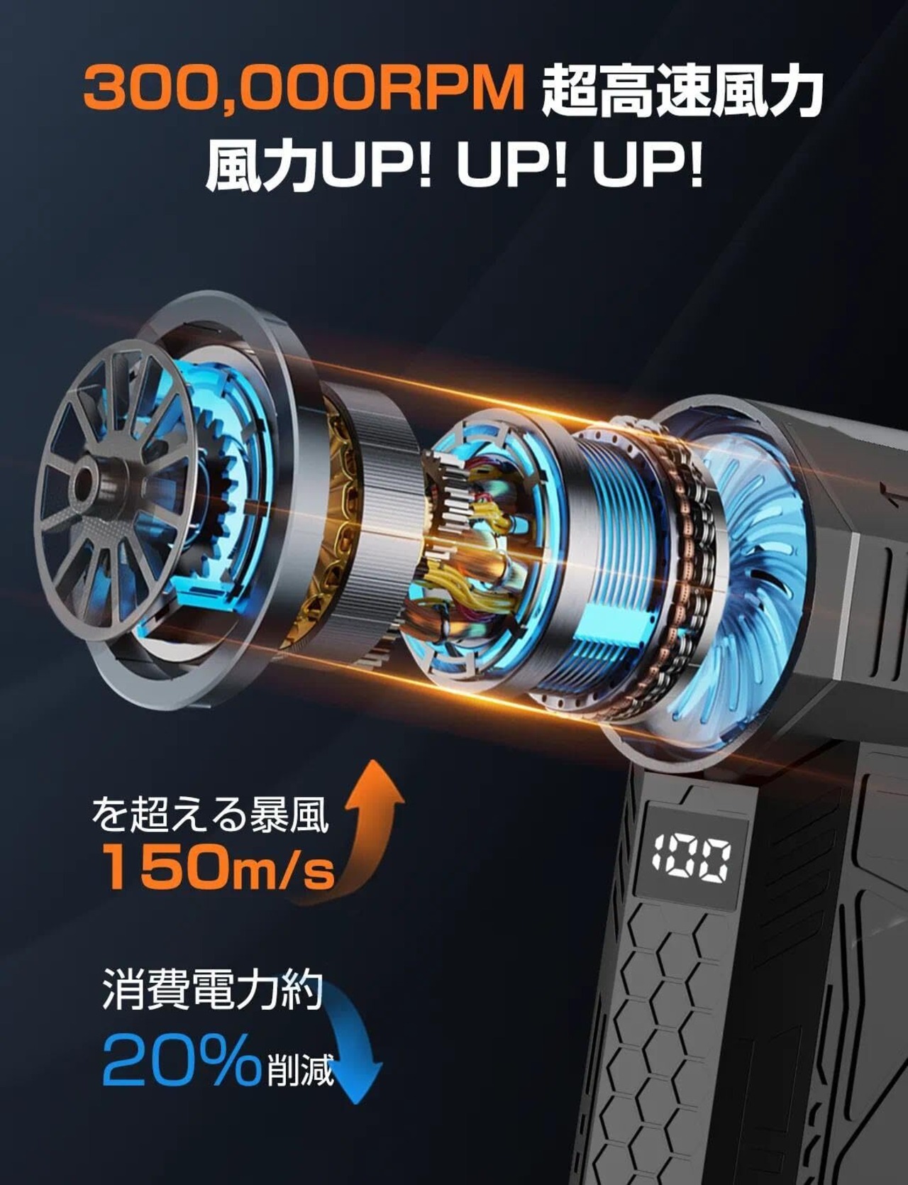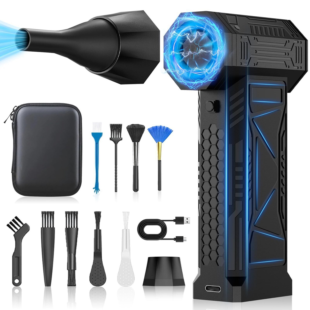 【高品質&スタイリッシュデザイン】高硬度、耐高温材料から作られた電気エアダスターは、強力な爆発力、優れた耐久性、長寿命を提供します。完璧な質感だけでなく、スタイリッシュなメカ風デザインと完璧な内装設定を誇っています。低熱出力で安全かつ効率的な操作が可能です。 ご注意:「発熱」という問題は、故障や不良品ではありません。本製品は高速回転による動作を行うため、自然に熱が発生します。これは正常な動作の一部であり、使用中にある程度の熱を感じることがあります。