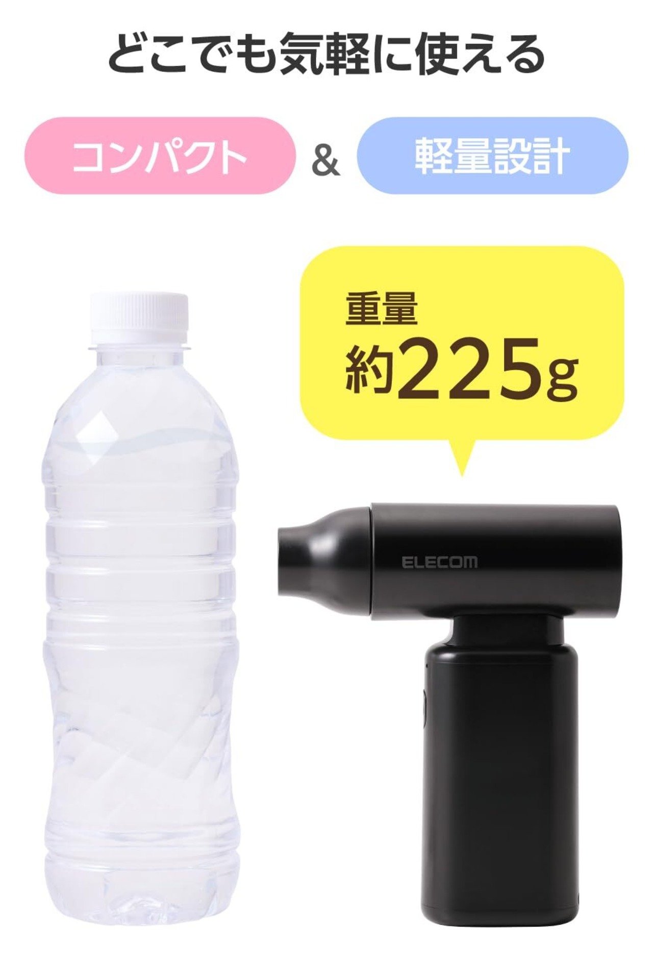 エレコム 電動エアダスター ブロワー 充電式 強力 小型 軽量 逆さ噴射可能 3段階風量調整 3種類ノズル付き ブラック ADWALBB02BK