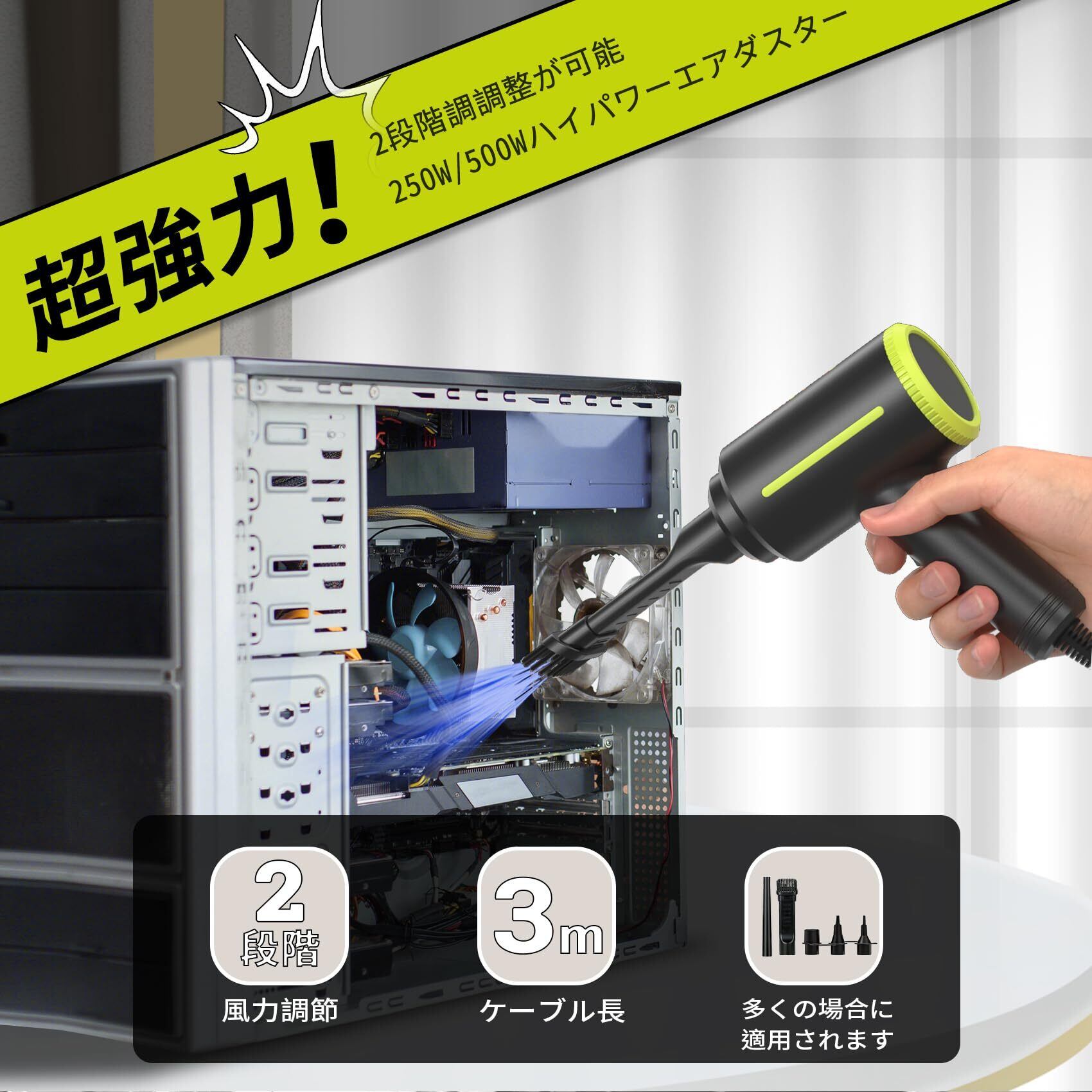 ATEngeJP 電動エアダスター 500W/260W 2段階風量 3mコード 3種類ノズル PC/キーボード用 強力ホコリ除去